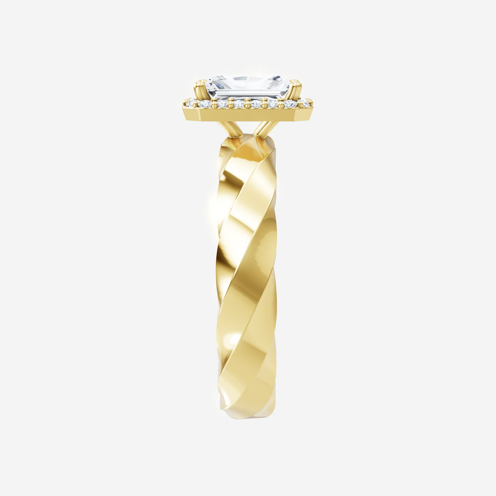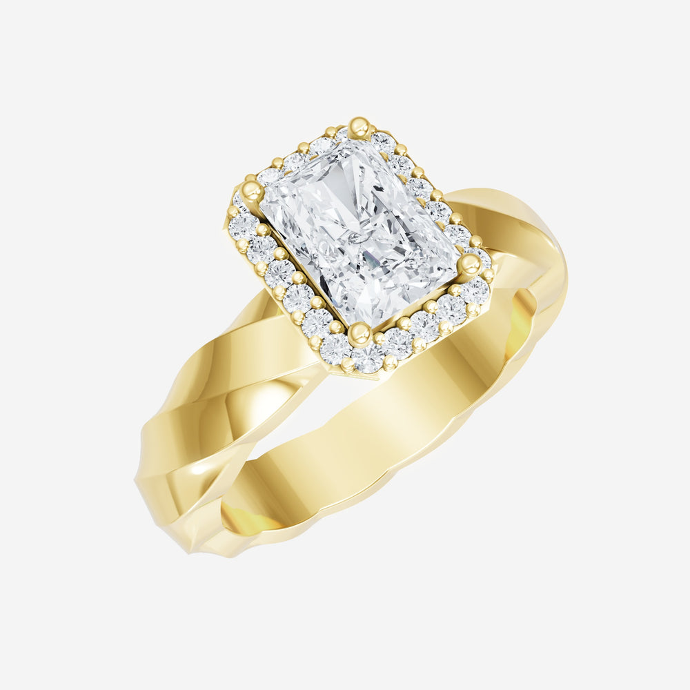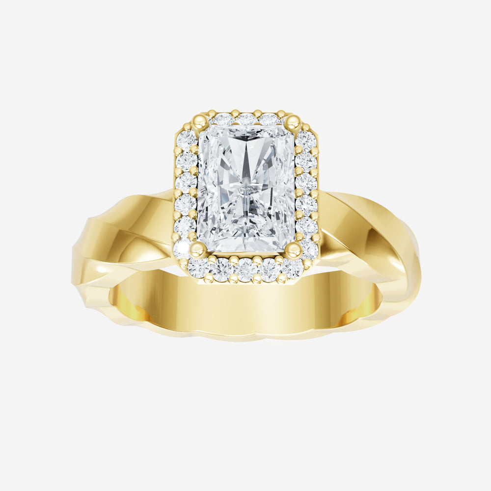 You’ve designed a ring that reflects lasting elegance and grace! Crafted from 14k Yellow Gold, this exquisite Radiant lab-grown diamond is the centerpiece of this unique design. This Twisted Shank with a Single Halo head showcases the brilliance of the Radiant diamond, creating a timeless look. This elegant piece is the perfect symbol of love, strength, and timeless beauty.