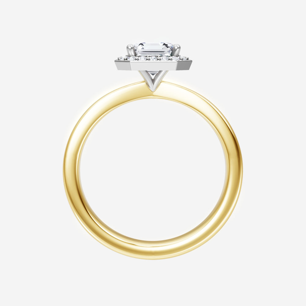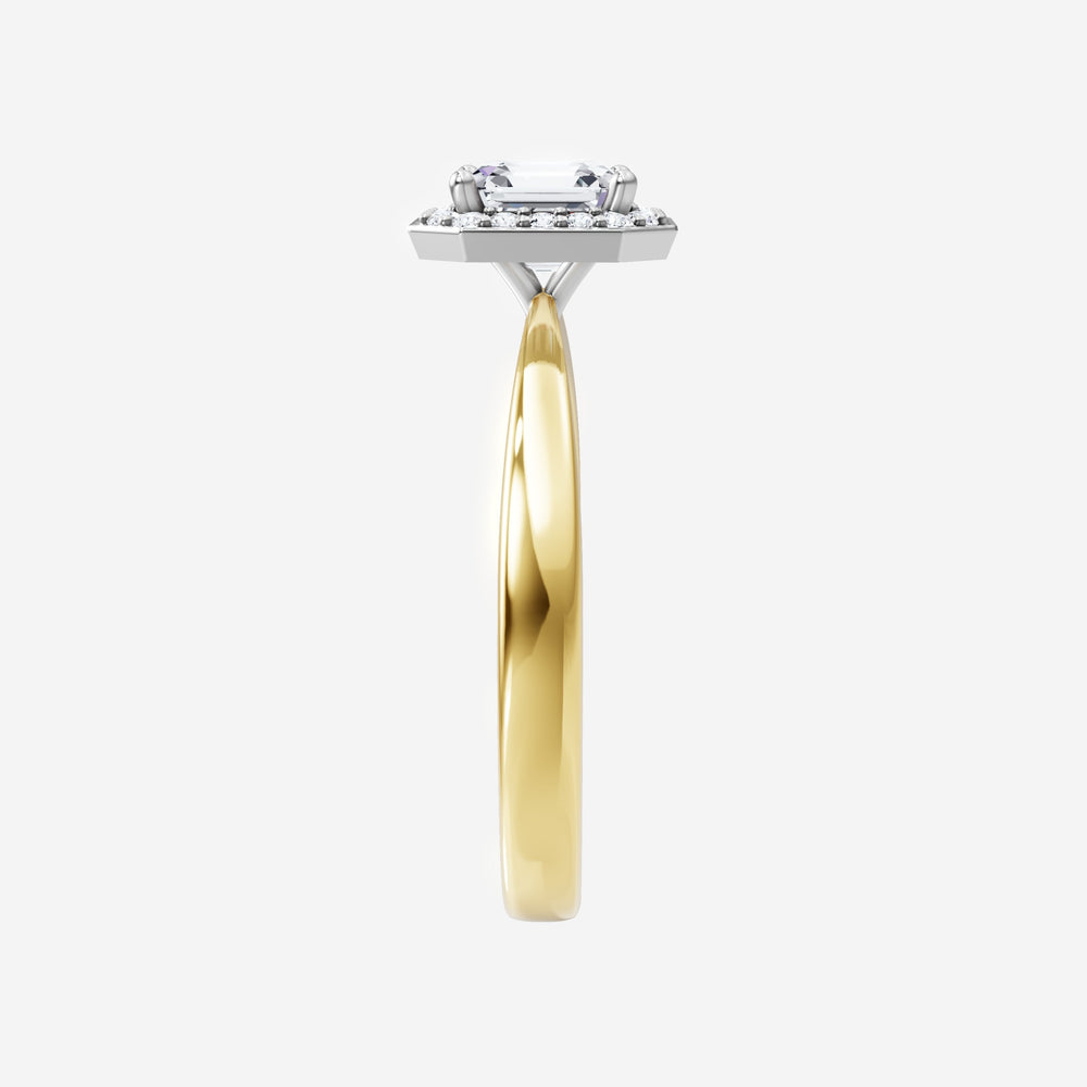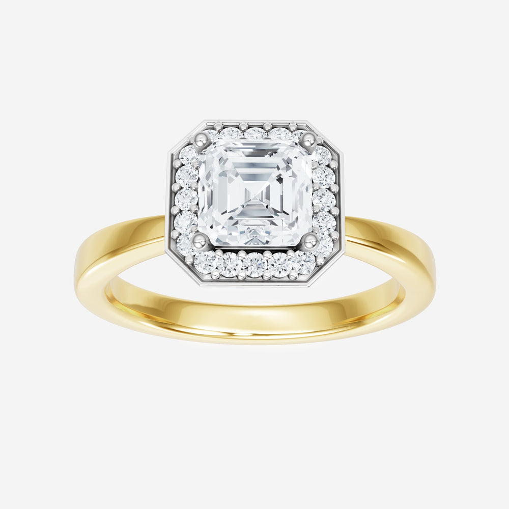 You’ve designed a ring that reflects lasting elegance and grace! Crafted from 14k Yellow White Dual Tone, this exquisite Asscher lab-grown diamond is the centerpiece of this unique design. This Bow Shank (Reverse Tapered) with a Pave Halo head showcases the brilliance of the Asscher diamond, creating a timeless look. This elegant piece is the perfect symbol of love, strength, and timeless beauty.