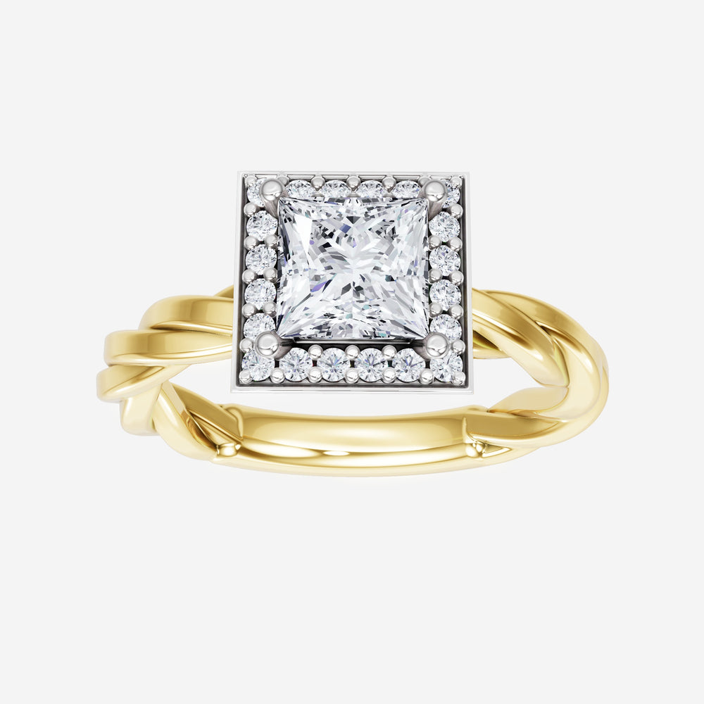 You’ve designed a ring that reflects lasting elegance and grace! Crafted from 14k Yellow White Dual Tone, this exquisite Princess lab-grown diamond is the centerpiece of this unique design. This Rope Plain Shank with a Pave Halo head showcases the brilliance of the Princess diamond, creating a timeless look. It's a piece of elegance and beauty, perfect for marking life's most beautiful occasions.