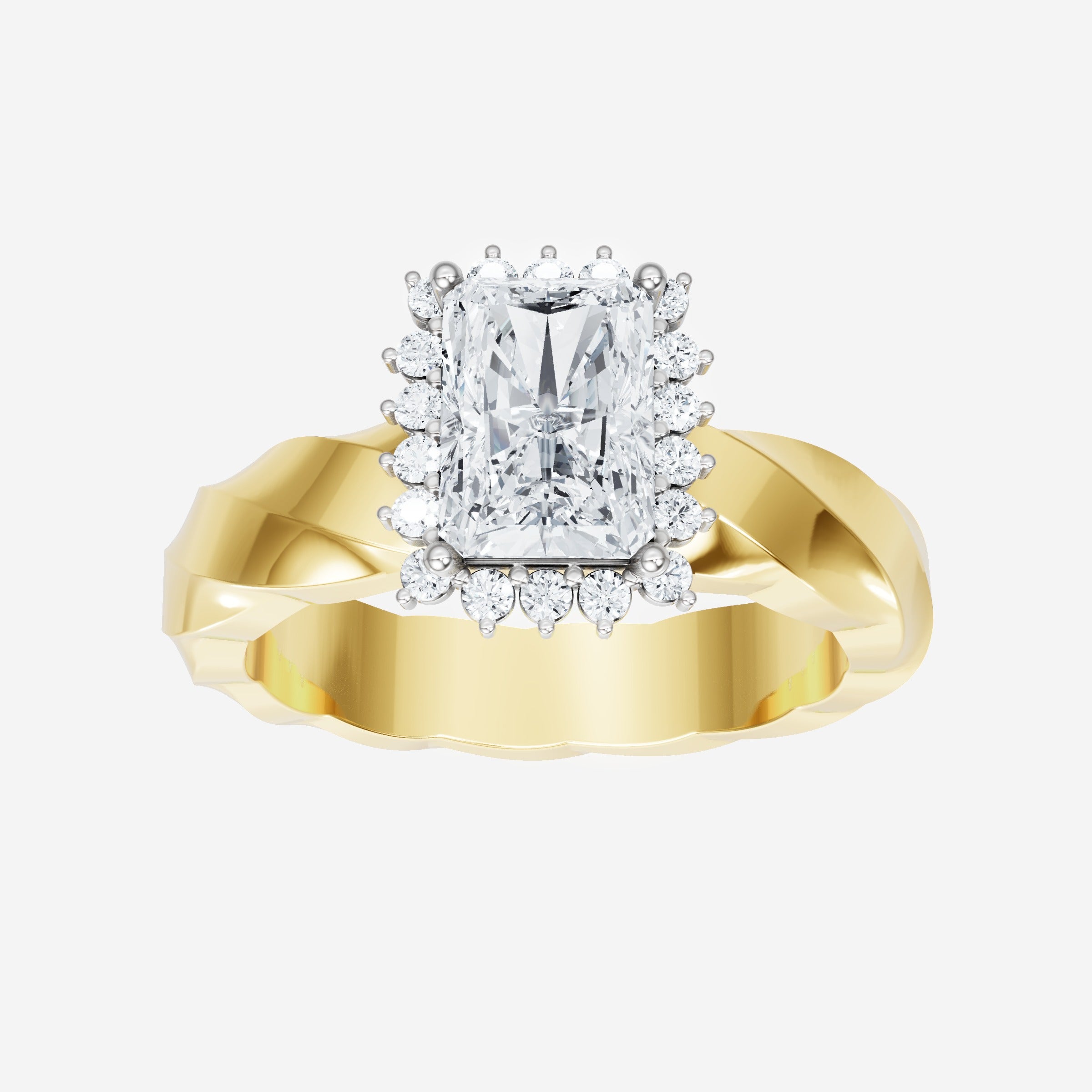 You’ve designed a ring that reflects lasting elegance and grace! Crafted from 14k Yellow White Dual Tone, this exquisite Radiant lab-grown diamond is the centerpiece of this unique design. This Twisted Shank with a Diana Halo head showcases the brilliance of the Radiant diamond, creating a timeless look. This ring will become a cherished reminder of life's most treasured moments.