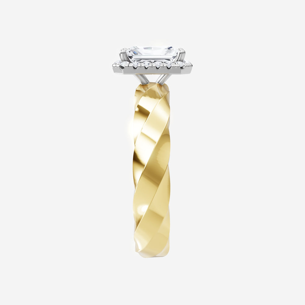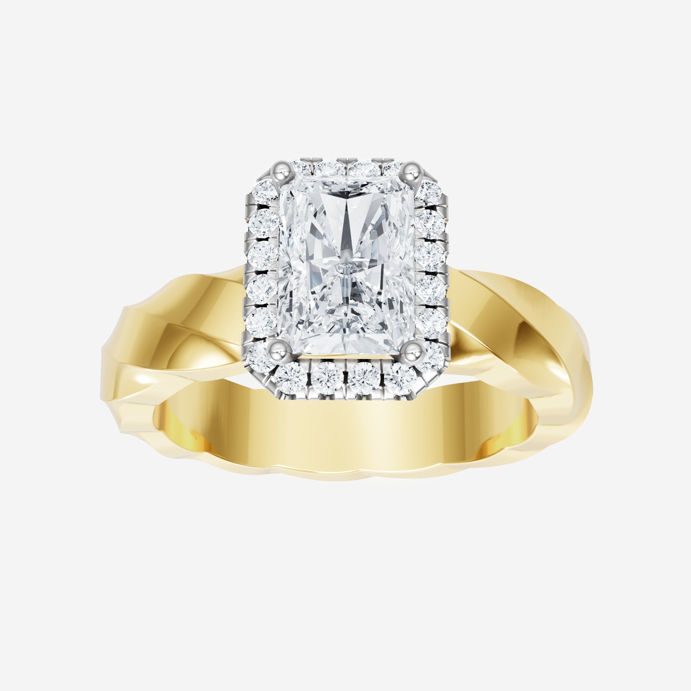 You’ve designed a ring that reflects lasting elegance and grace! Crafted from 14k Yellow White Dual Tone, this exquisite Radiant lab-grown diamond is the centerpiece of this unique design. This Twisted Shank with a Micro Halo head showcases the brilliance of the Radiant diamond, creating a timeless look. It's a piece of elegance and beauty, perfect for marking life's most beautiful occasions.