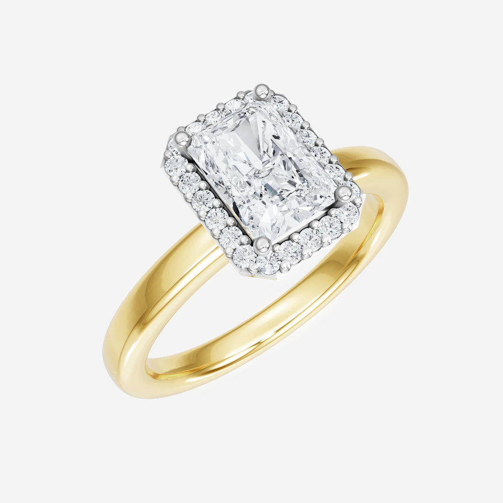 You’ve designed a ring that reflects lasting elegance and grace! Crafted from 14k Yellow White Dual Tone, this exquisite Radiant lab-grown diamond is the centerpiece of this unique design. This Basic Plain Shank with a Single Halo head showcases the brilliance of the Radiant diamond, creating a timeless look. A perfect choice to celebrate love, commitment, and everything in between.
