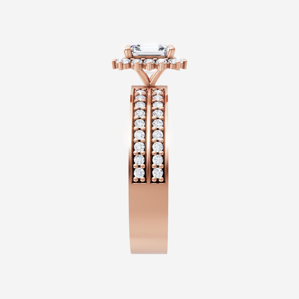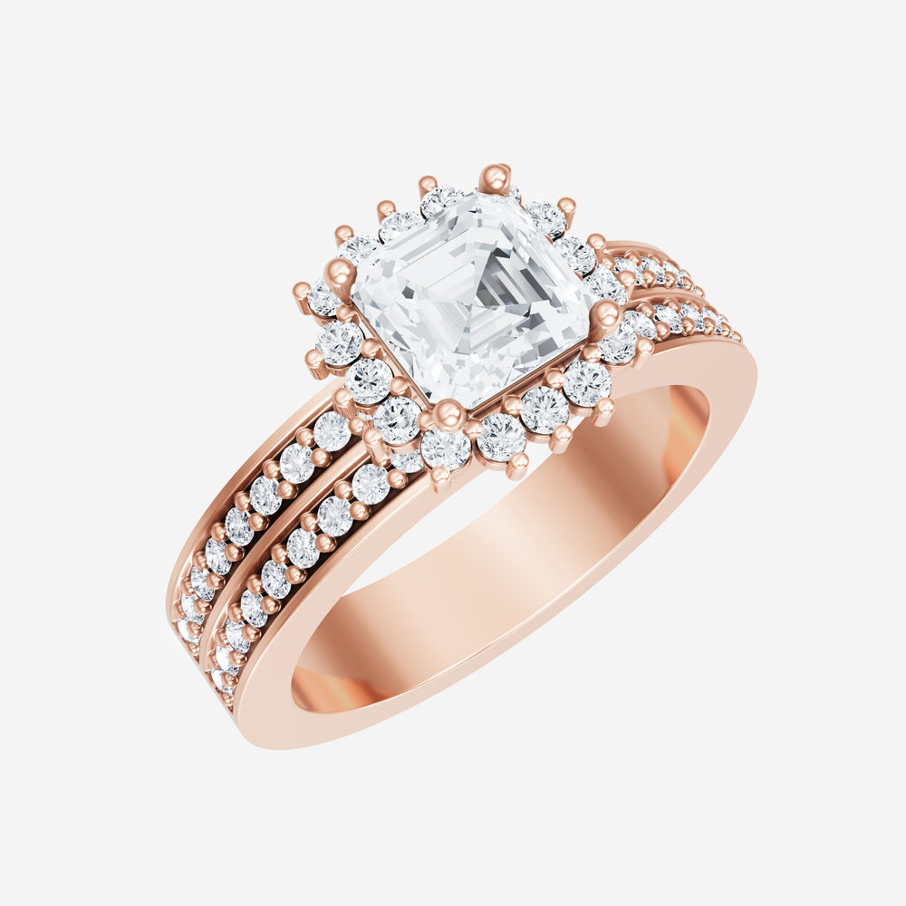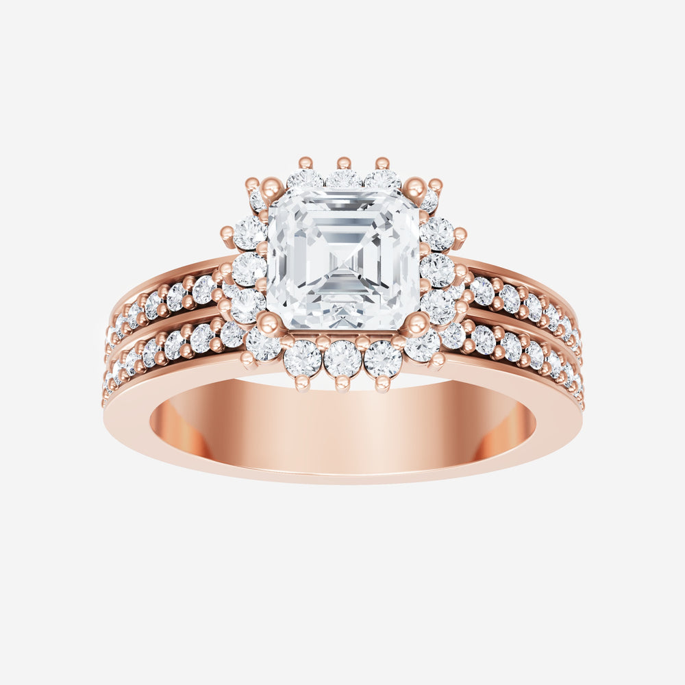 You’ve designed a ring that reflects lasting elegance and grace! Crafted from 18k Rose Gold, this exquisite Asscher lab-grown diamond is the centerpiece of this unique design. This Double Row Pave with a Diana Halo head showcases the brilliance of the Asscher diamond, creating a timeless look. Whether as a gift or a personal treasure, this ring will forever symbolize the most meaningful moments in life.