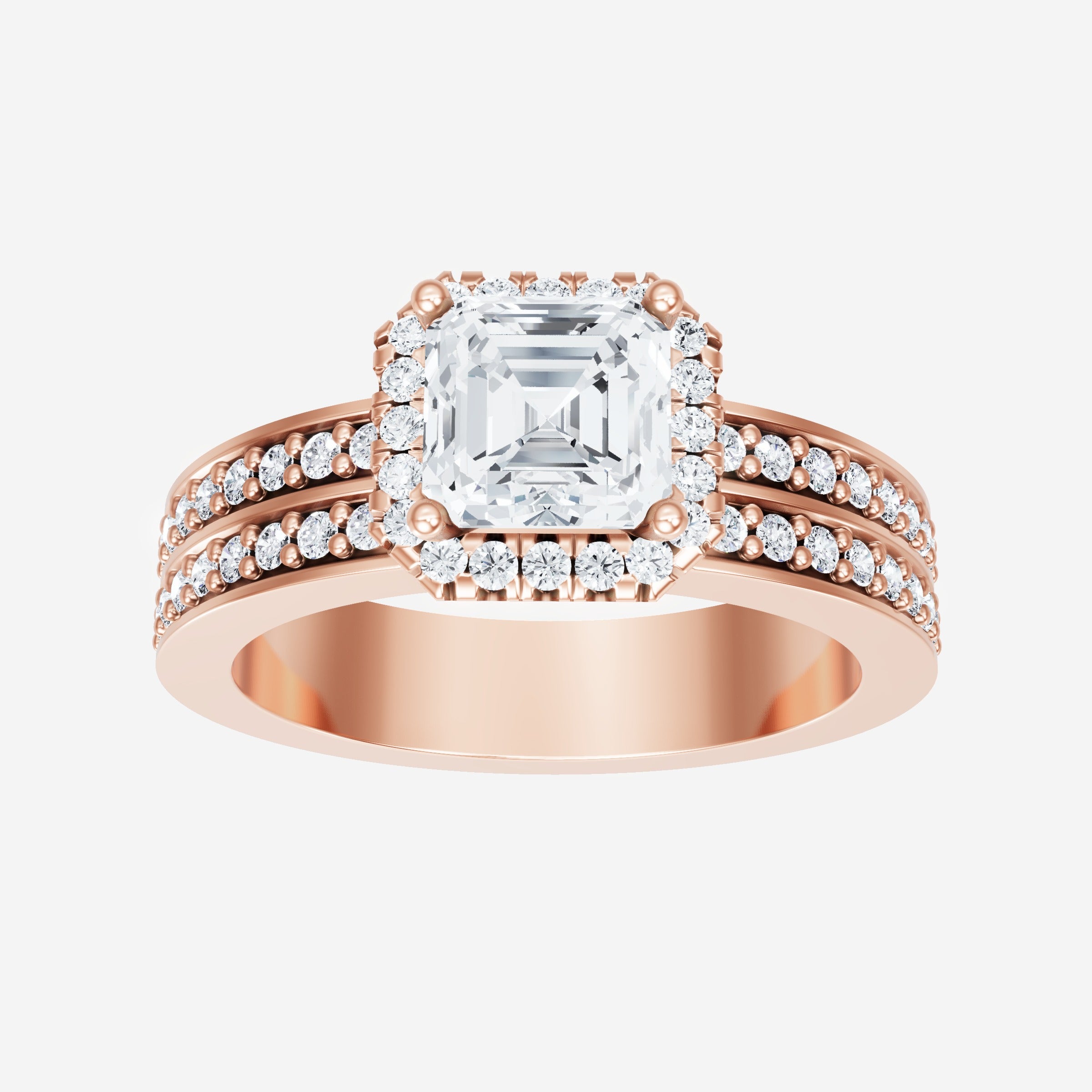You’ve designed a ring that reflects lasting elegance and grace! Crafted from 18k Rose Gold, this exquisite Asscher lab-grown diamond is the centerpiece of this unique design. This Double Row Pave with a Micro Halo head showcases the brilliance of the Asscher diamond, creating a timeless look. It's a piece of elegance and beauty, perfect for marking life's most beautiful occasions.