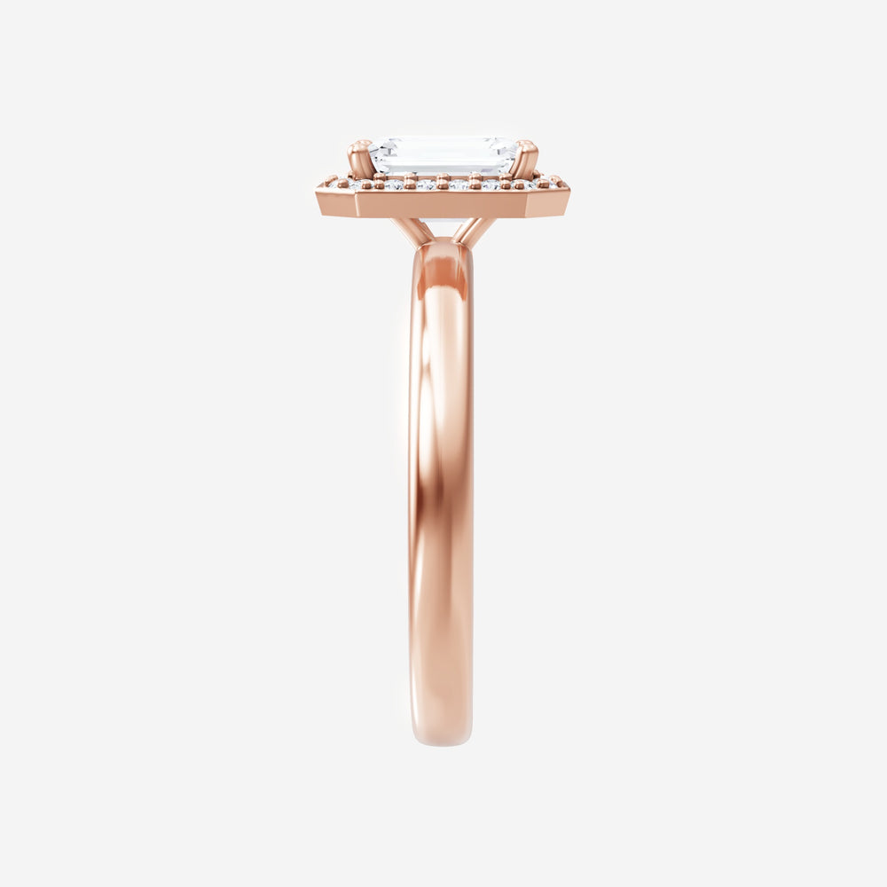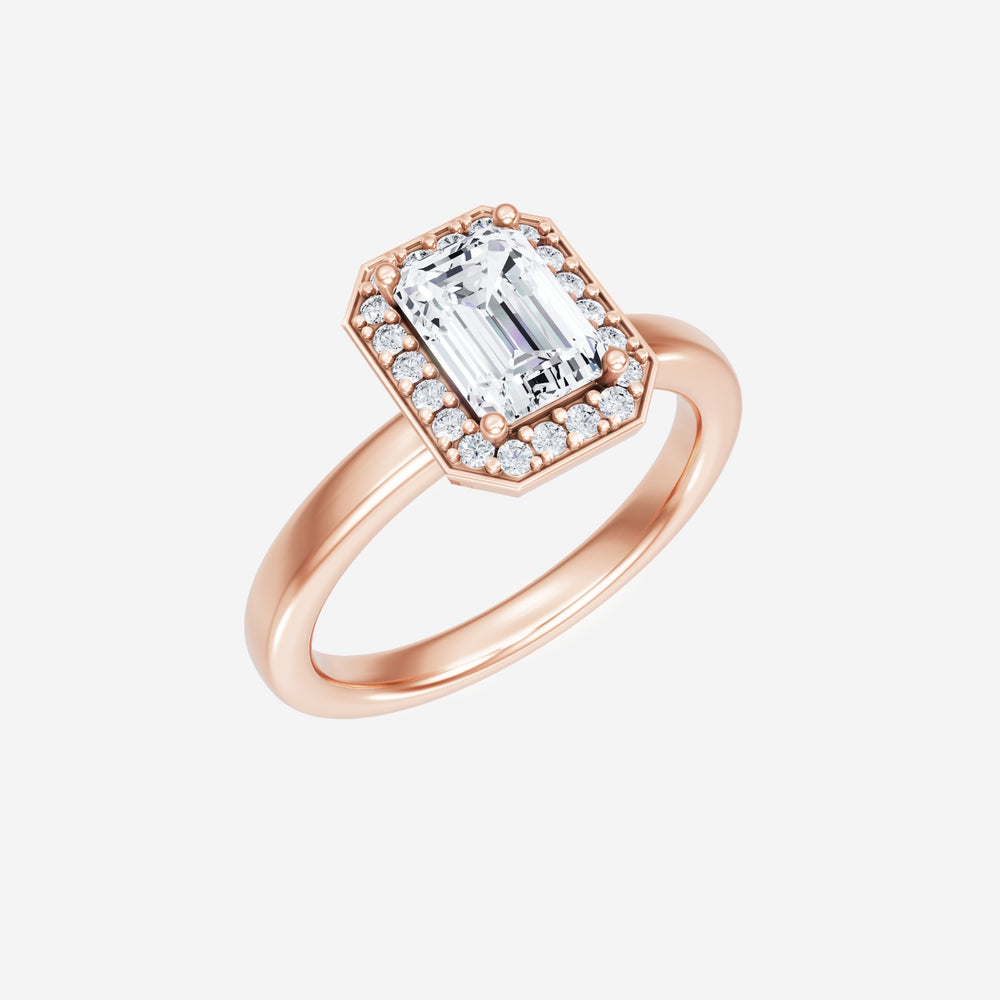 You’ve designed a ring that reflects lasting elegance and grace! Crafted from 18k Rose Gold, this exquisite Emerald lab-grown diamond is the centerpiece of this unique design. This Basic Plain Shank with a Pave Halo head showcases the brilliance of the Emerald diamond, creating a timeless look. This stunning ring makes the perfect symbol of everlasting love and devotion.