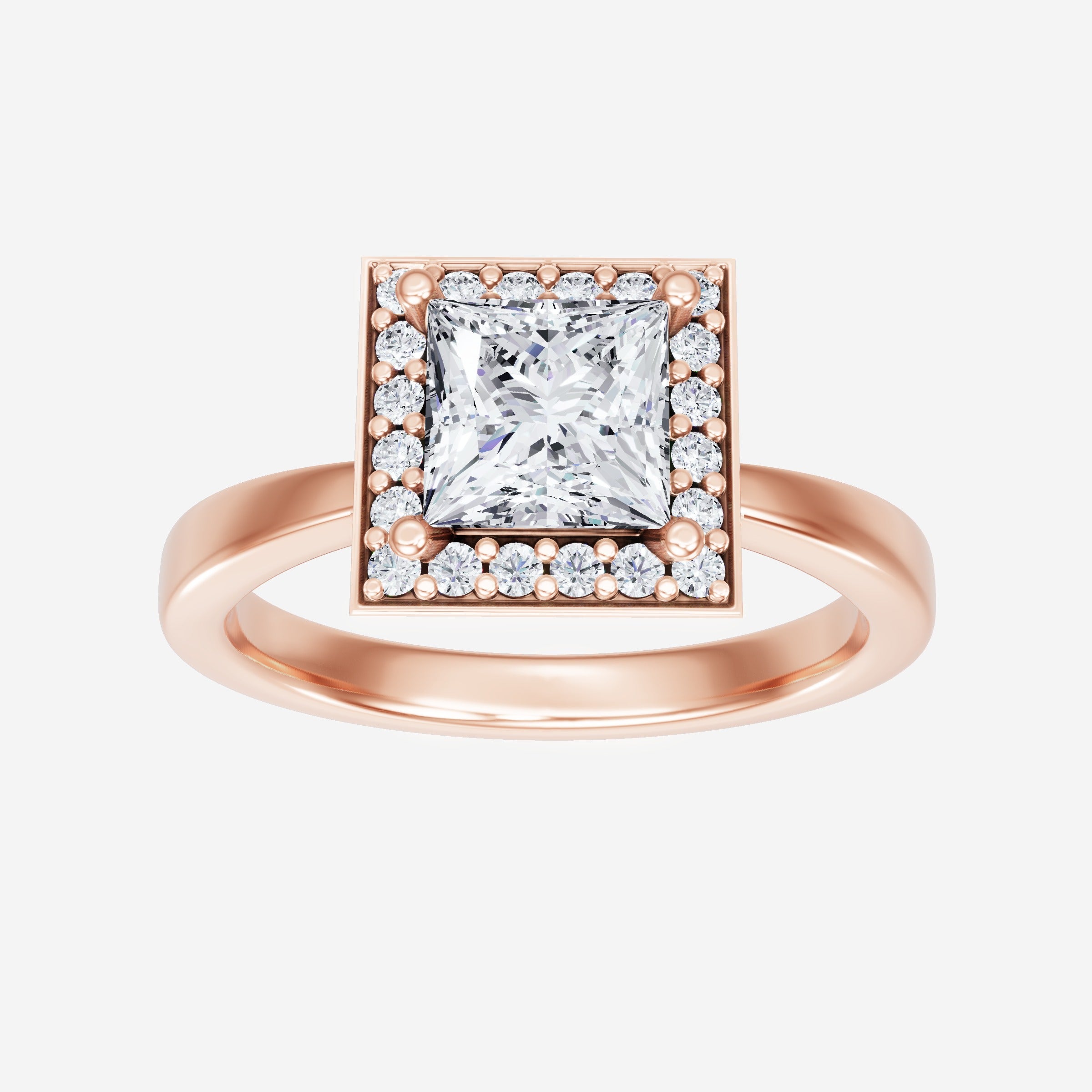 You’ve designed a ring that reflects lasting elegance and grace! Crafted from 18k Rose Gold, this exquisite Princess lab-grown diamond is the centerpiece of this unique design. This Bow Shank (Reverse Tapered) with a Pave Halo head showcases the brilliance of the Princess diamond, creating a timeless look. Whether as a gift or a personal treasure, this ring will forever symbolize the most meaningful moments in life.