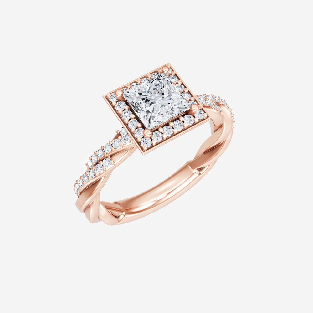 You’ve designed a ring that reflects lasting elegance and grace! Crafted from 18k Rose Gold, this exquisite Princess lab-grown diamond is the centerpiece of this unique design. This Rope Diamond Shank with a Pave Halo head showcases the brilliance of the Princess diamond, creating a timeless look. This ring will become a cherished reminder of life's most treasured moments.