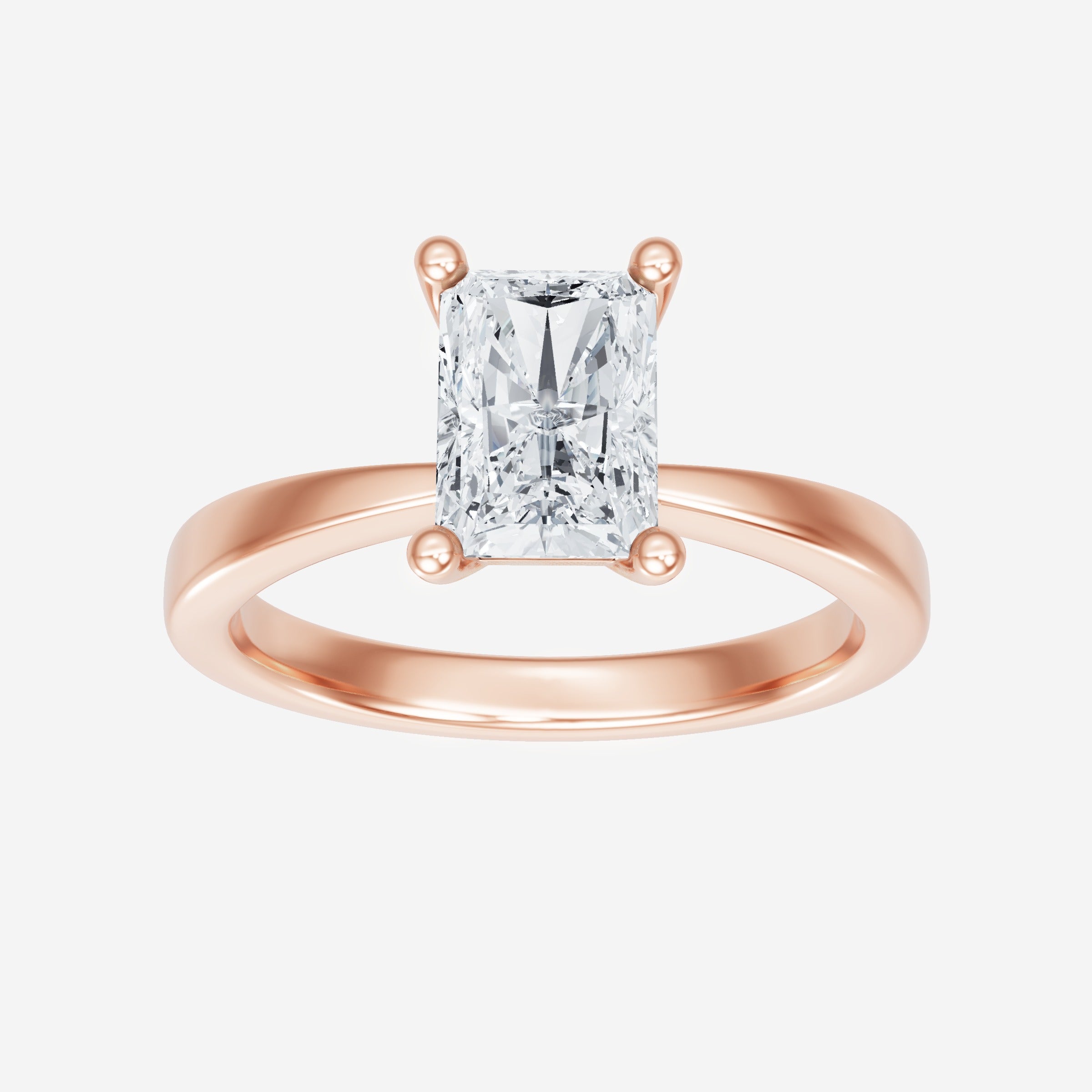You’ve designed a ring that reflects lasting elegance and grace! Crafted from 18k Rose Gold, this exquisite Radiant lab-grown diamond is the centerpiece of this unique design. This Bow Shank (Reverse Tapered) with a 4 Prong Head head showcases the brilliance of the Radiant diamond, creating a timeless look. Ideal for those who seek both beauty and meaning, this ring will stand as a testament to cherished memories.
