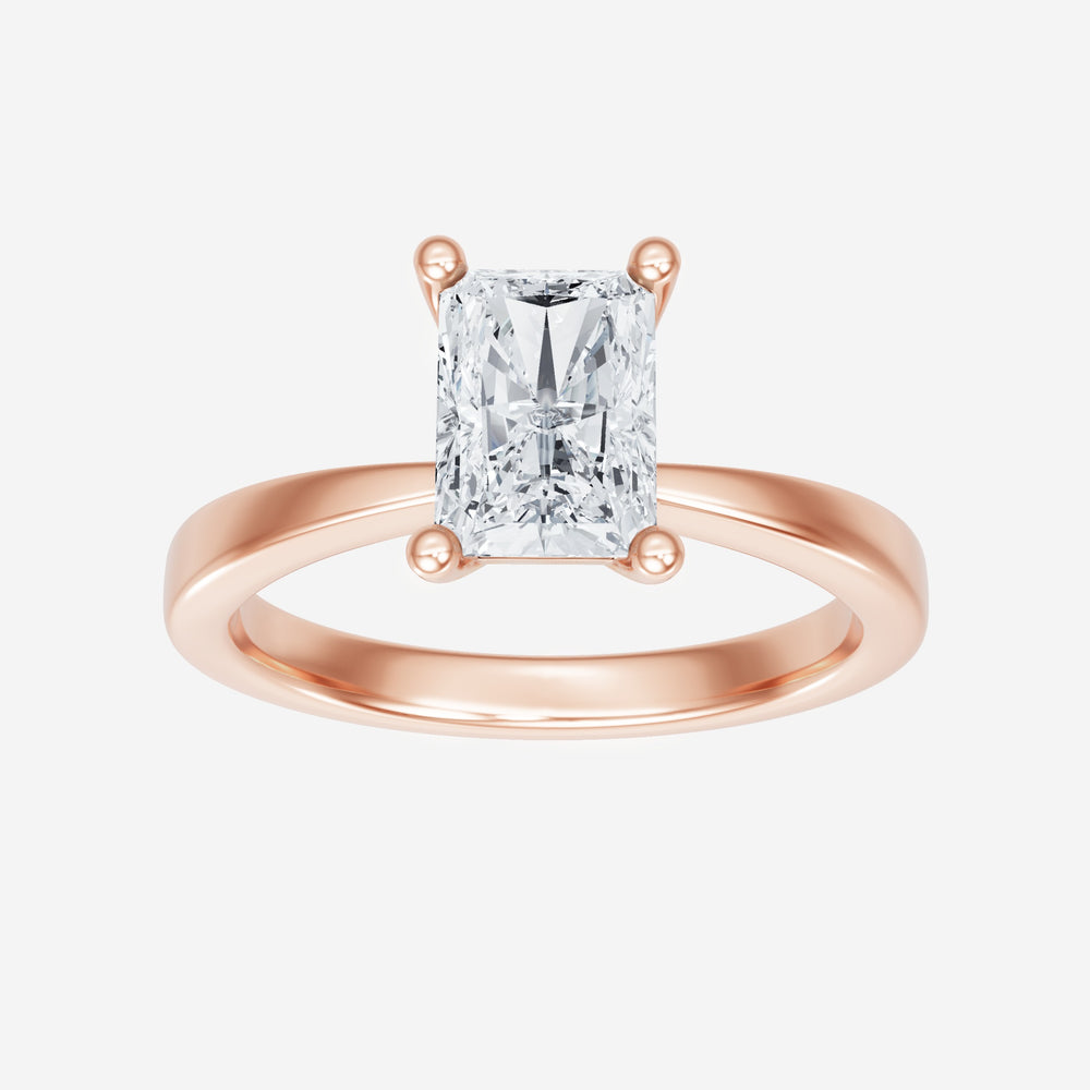 You’ve designed a ring that reflects lasting elegance and grace! Crafted from 18k Rose Gold, this exquisite Radiant lab-grown diamond is the centerpiece of this unique design. This Bow Shank (Reverse Tapered) with a 4 Prong Head head showcases the brilliance of the Radiant diamond, creating a timeless look. It's a piece of elegance and beauty, perfect for marking life's most beautiful occasions.