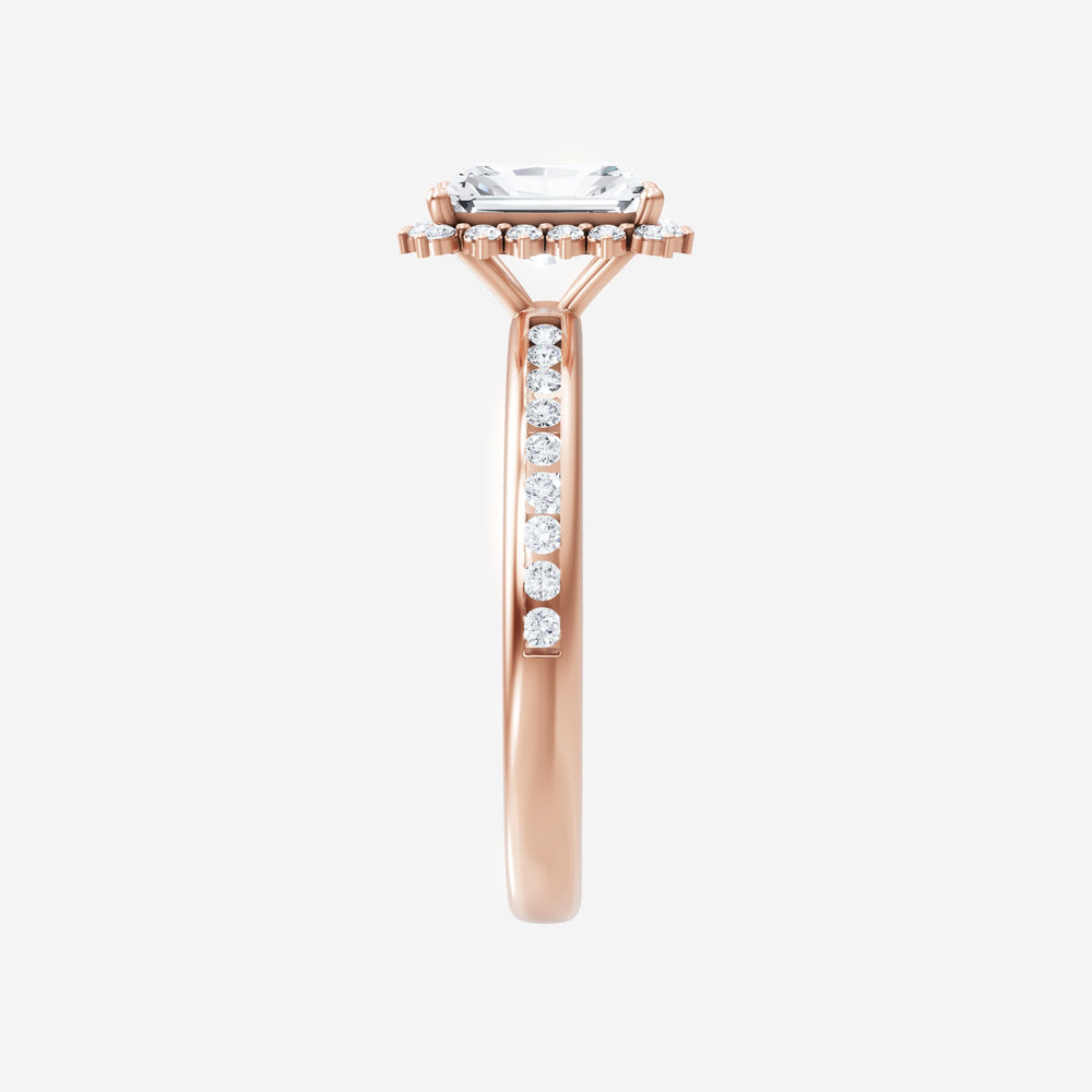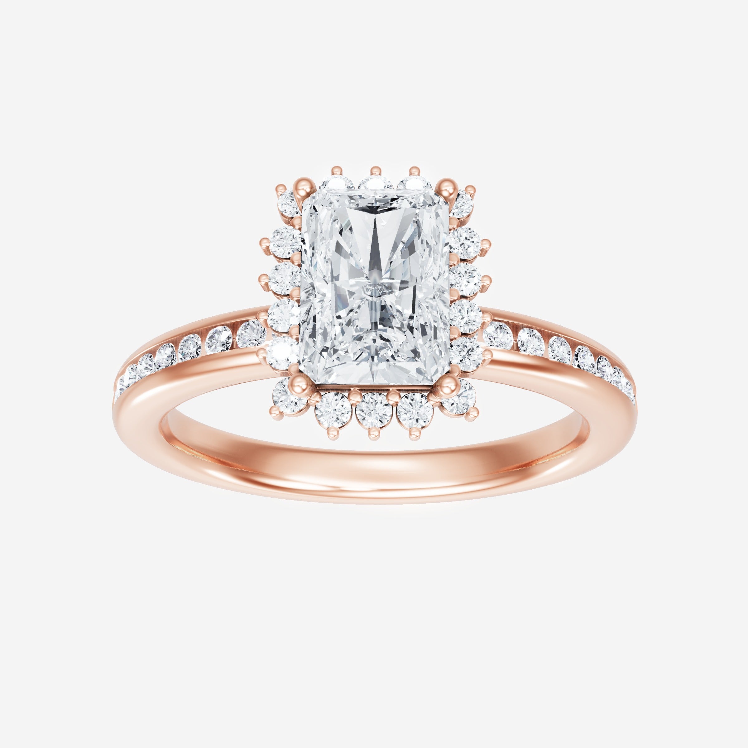 You’ve designed a ring that reflects lasting elegance and grace! Crafted from 18k Rose Gold, this exquisite Radiant lab-grown diamond is the centerpiece of this unique design. This Channel Set Shank with a Diana Halo head showcases the brilliance of the Radiant diamond, creating a timeless look. This ring will become a cherished reminder of life's most treasured moments.