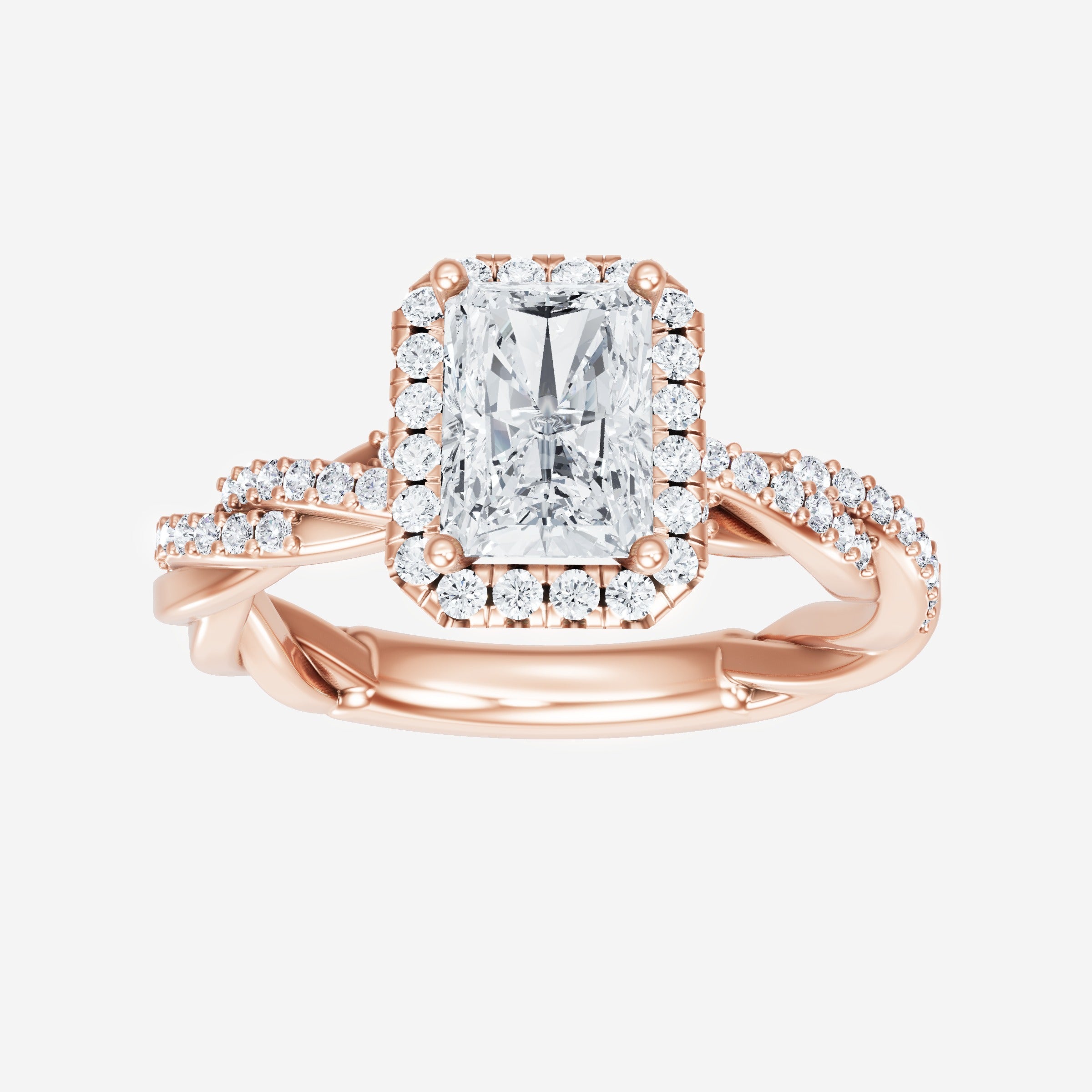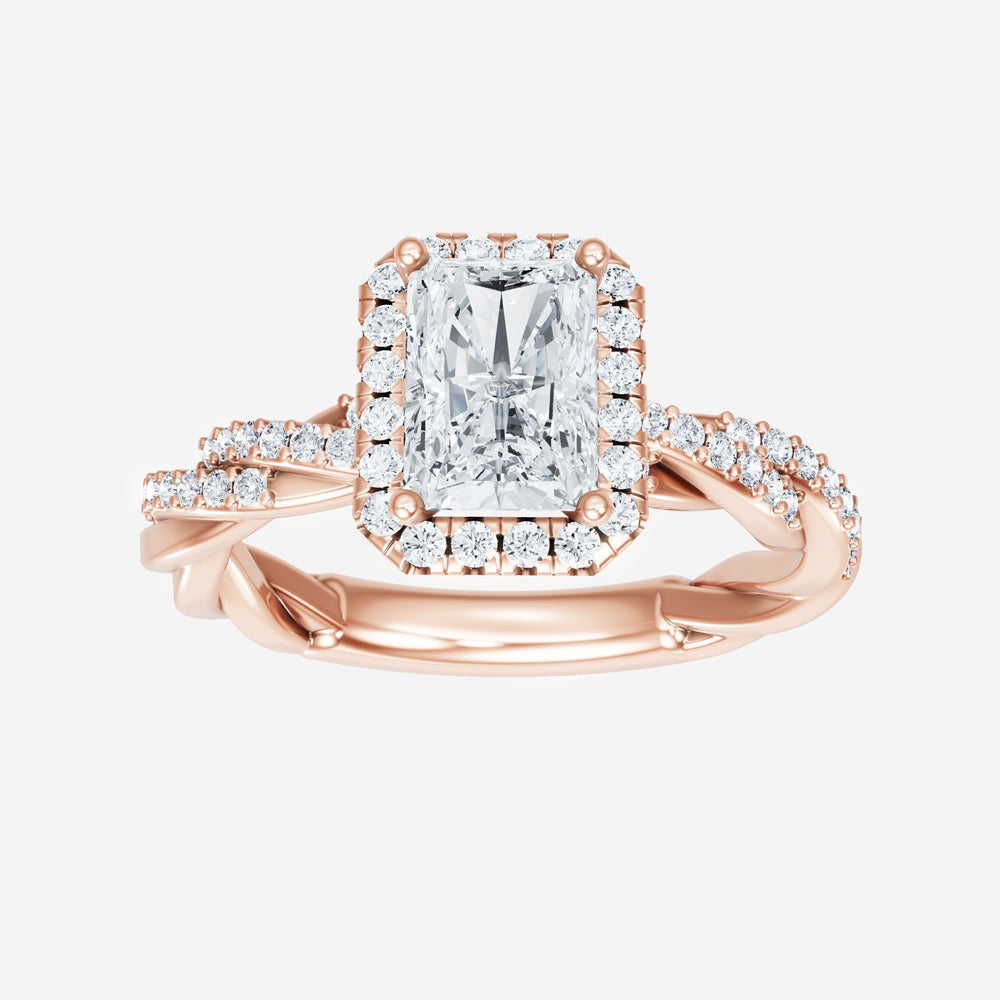 You’ve designed a ring that reflects lasting elegance and grace! Crafted from 18k Rose Gold, this exquisite Radiant lab-grown diamond is the centerpiece of this unique design. This Rope Diamond Shank with a Micro Halo head showcases the brilliance of the Radiant diamond, creating a timeless look. This elegant piece is the perfect symbol of love, strength, and timeless beauty.