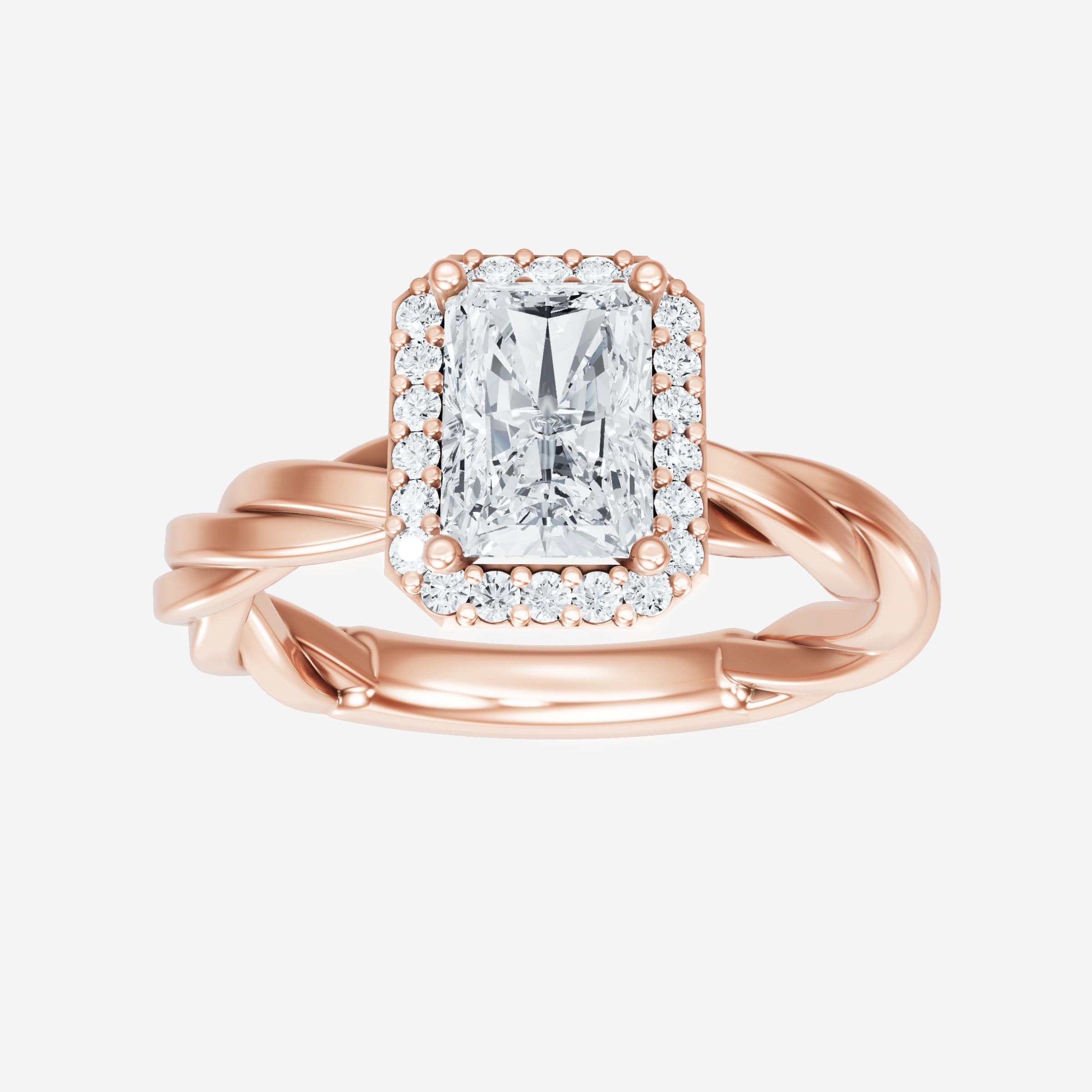 You’ve designed a ring that reflects lasting elegance and grace! Crafted from 18k Rose Gold, this exquisite Radiant lab-grown diamond is the centerpiece of this unique design. This Rope Plain Shank with a Single Halo head showcases the brilliance of the Radiant diamond, creating a timeless look. This elegant piece is the perfect symbol of love, strength, and timeless beauty.