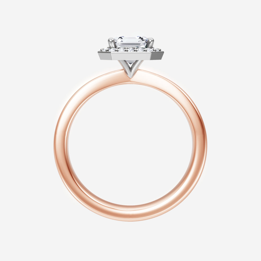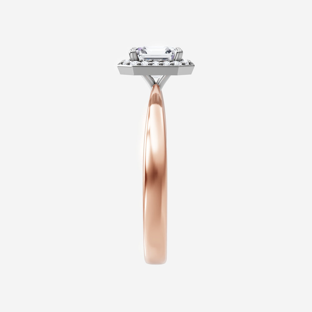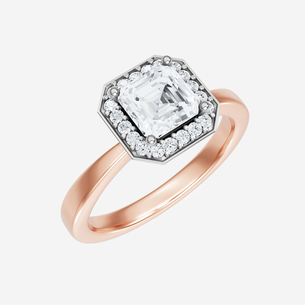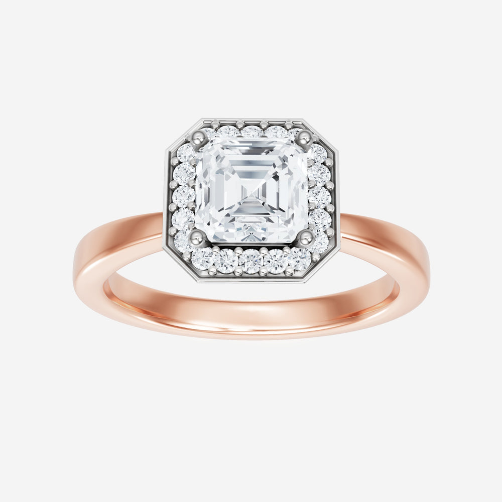 You’ve designed a ring that reflects lasting elegance and grace! Crafted from 18k Rose White Dual Tone, this exquisite Asscher lab-grown diamond is the centerpiece of this unique design. This Bow Shank (Reverse Tapered) with a Pave Halo head showcases the brilliance of the Asscher diamond, creating a timeless look. This stunning ring makes the perfect symbol of everlasting love and devotion.