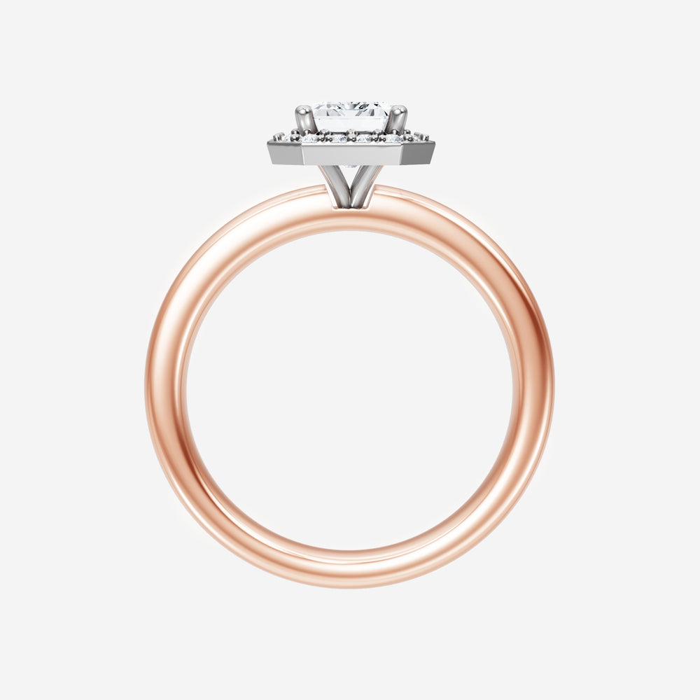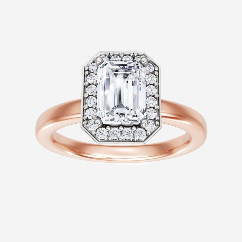 You’ve designed a ring that reflects lasting elegance and grace! Crafted from 18k Rose White Dual Tone, this exquisite Emerald lab-grown diamond is the centerpiece of this unique design. This Basic Plain Shank with a Pave Halo head showcases the brilliance of the Emerald diamond, creating a timeless look. This elegant piece is the perfect symbol of love, strength, and timeless beauty.