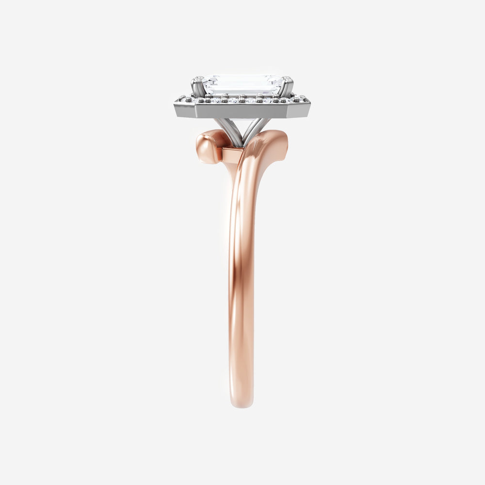 You’ve designed a ring that reflects lasting elegance and grace! Crafted from 18k Rose White Dual Tone, this exquisite Emerald lab-grown diamond is the centerpiece of this unique design. This Bypass Shank with a Pave Halo head showcases the brilliance of the Emerald diamond, creating a timeless look. This elegant piece is the perfect symbol of love, strength, and timeless beauty.