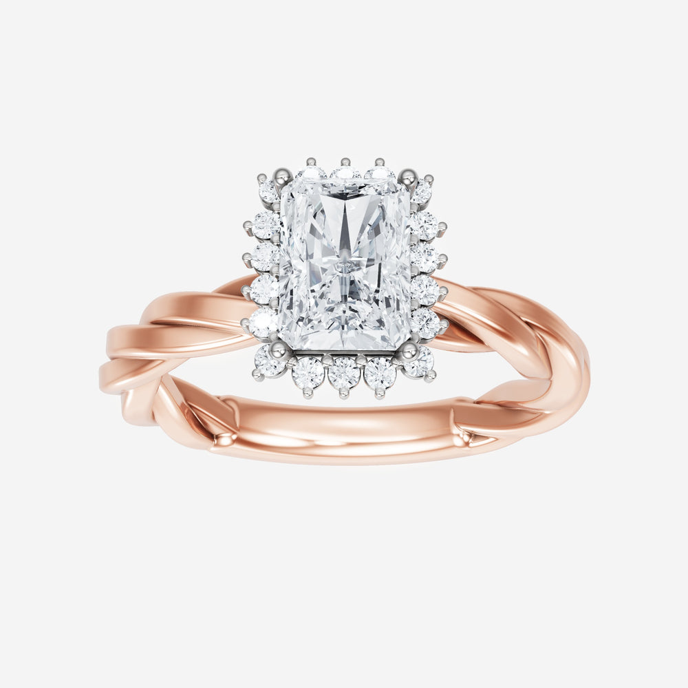 You’ve designed a ring that reflects lasting elegance and grace! Crafted from 18k Rose White Dual Tone, this exquisite Radiant lab-grown diamond is the centerpiece of this unique design. This Rope Plain Shank with a Diana Halo head showcases the brilliance of the Radiant diamond, creating a timeless look. This stunning ring makes the perfect symbol of everlasting love and devotion.