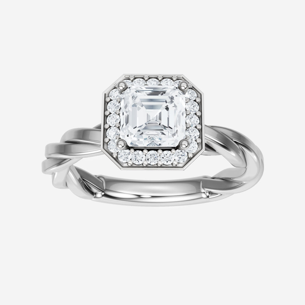 You’ve designed a ring that reflects lasting elegance and grace! Crafted from 18k White Gold, this exquisite Asscher lab-grown diamond is the centerpiece of this unique design. This Rope Plain Shank with a Pave Halo head showcases the brilliance of the Asscher diamond, creating a timeless look. Whether as a gift or a personal treasure, this ring will forever symbolize the most meaningful moments in life.
