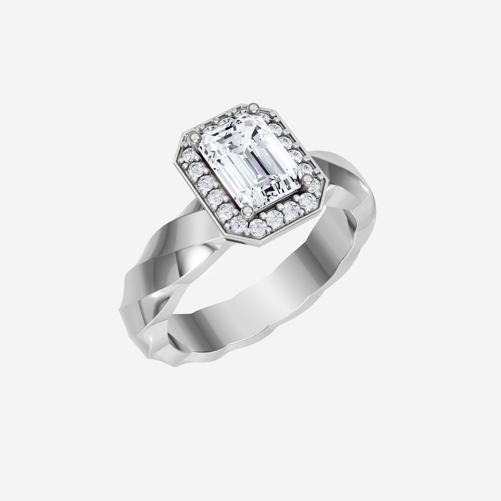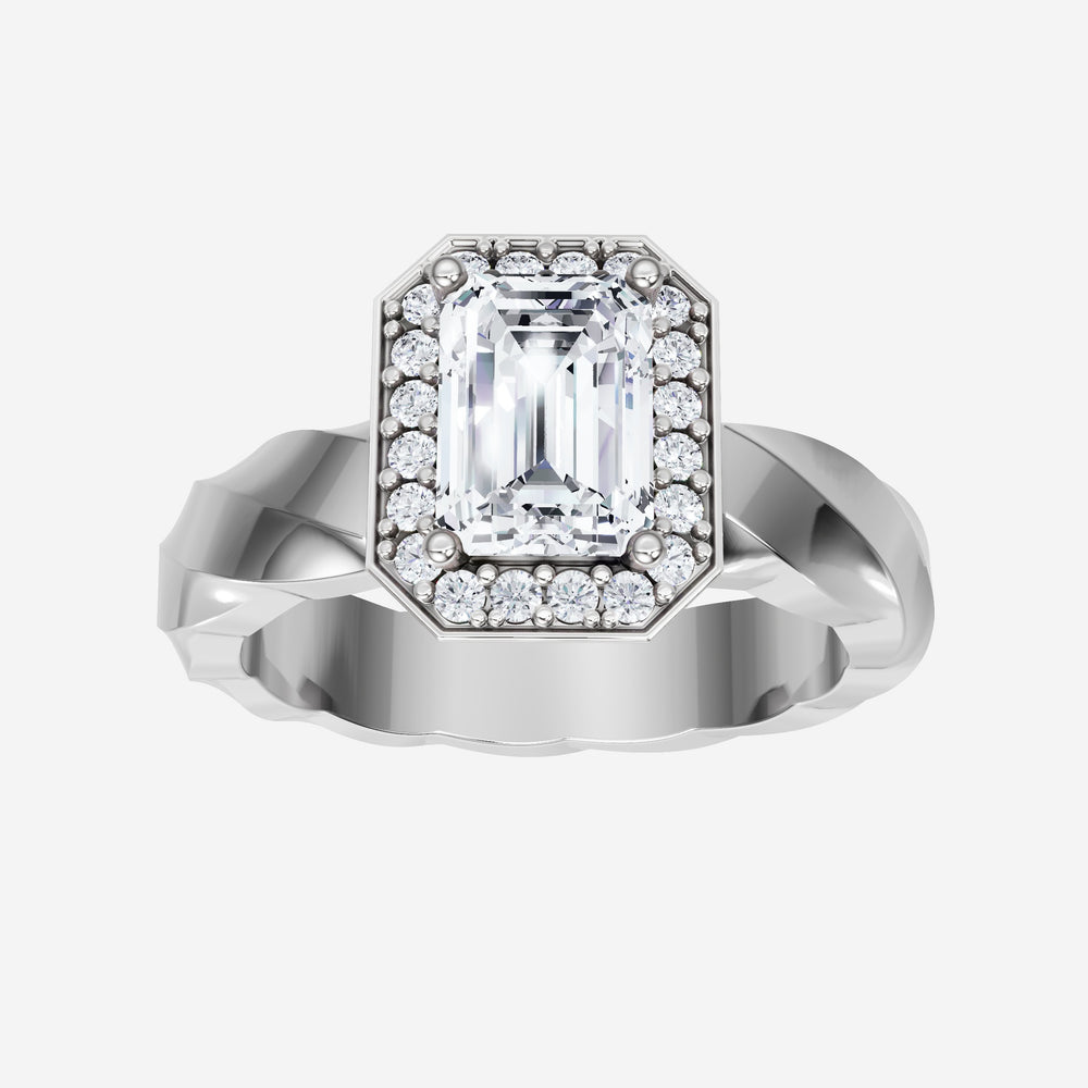 You’ve designed a ring that reflects lasting elegance and grace! Crafted from 18k White Gold, this exquisite Emerald lab-grown diamond is the centerpiece of this unique design. This Twisted Shank with a Pave Halo head showcases the brilliance of the Emerald diamond, creating a timeless look. Whether as a gift or a personal treasure, this ring will forever symbolize the most meaningful moments in life.