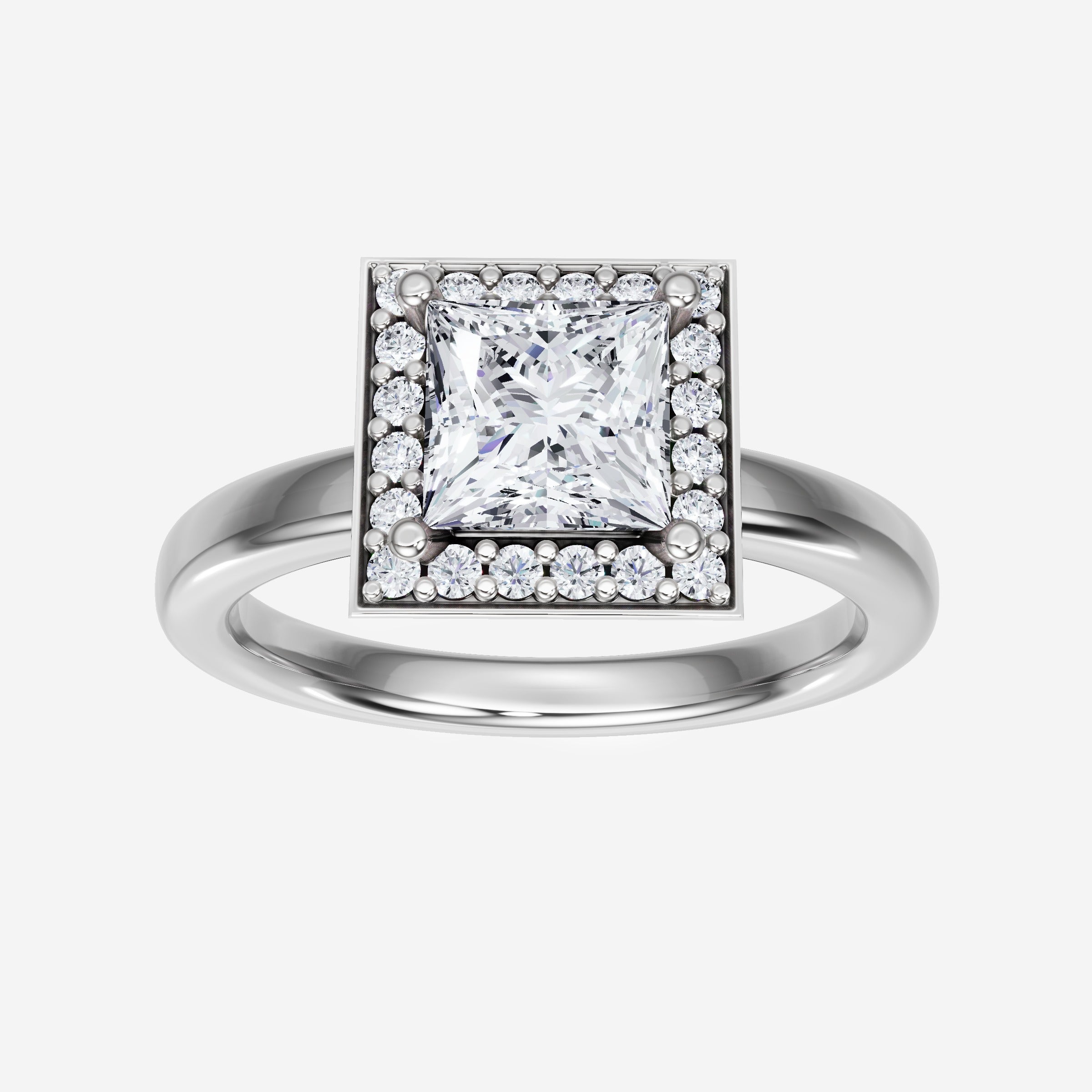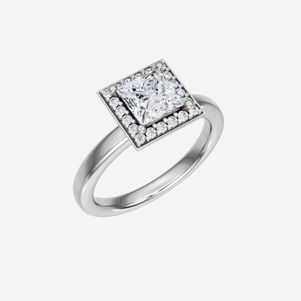 You’ve designed a ring that reflects lasting elegance and grace! Crafted from 18k White Gold, this exquisite Princess lab-grown diamond is the centerpiece of this unique design. This Basic Plain Shank with a Pave Halo head showcases the brilliance of the Princess diamond, creating a timeless look. It's a piece of elegance and beauty, perfect for marking life's most beautiful occasions.