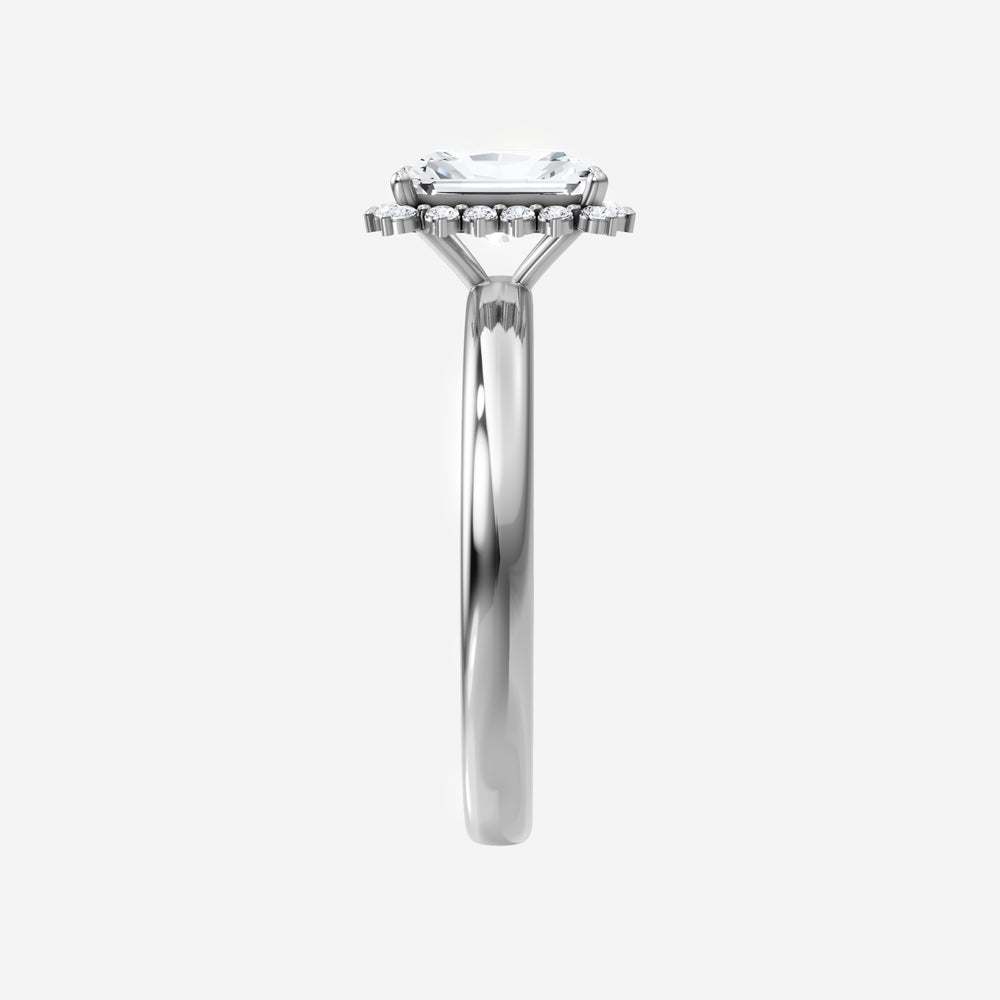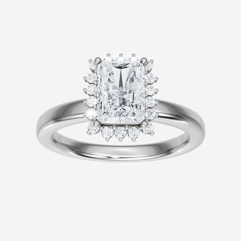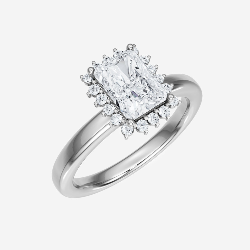 You’ve designed a ring that reflects lasting elegance and grace! Crafted from 18k White Gold, this exquisite Radiant lab-grown diamond is the centerpiece of this unique design. This Basic Plain Shank with a Diana Halo head showcases the brilliance of the Radiant diamond, creating a timeless look. It's a piece of elegance and beauty, perfect for marking life's most beautiful occasions.