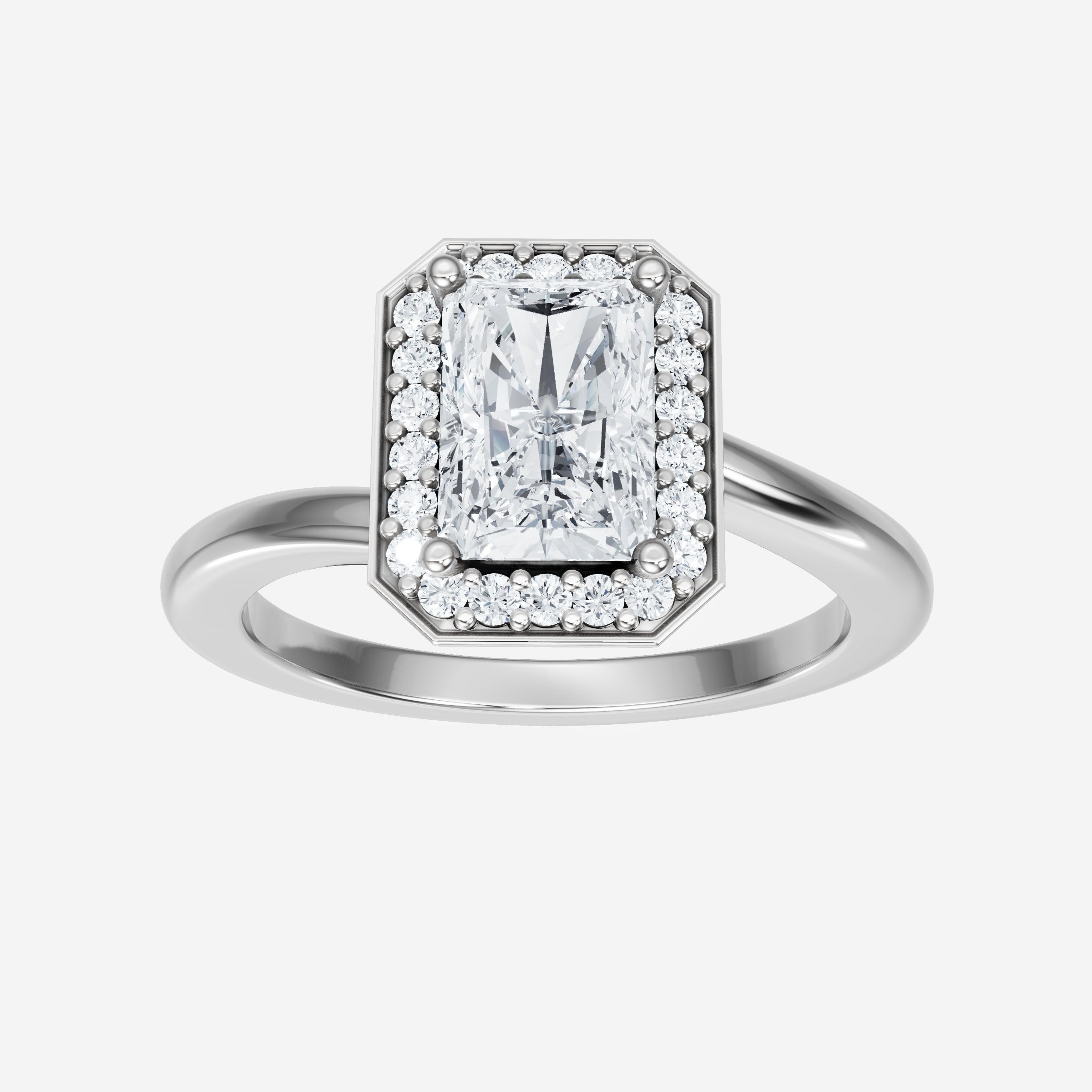 You’ve designed a ring that reflects lasting elegance and grace! Crafted from 18k White Gold, this exquisite Radiant lab-grown diamond is the centerpiece of this unique design. This Bypass Shank with a Pave Halo head showcases the brilliance of the Radiant diamond, creating a timeless look. This stunning ring makes the perfect symbol of everlasting love and devotion.