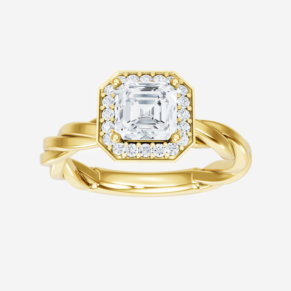 You’ve designed a ring that reflects lasting elegance and grace! Crafted from 18k Yellow Gold, this exquisite Asscher lab-grown diamond is the centerpiece of this unique design. This Rope Plain Shank with a Pave Halo head showcases the brilliance of the Asscher diamond, creating a timeless look. Whether as a gift or a personal treasure, this ring will forever symbolize the most meaningful moments in life.