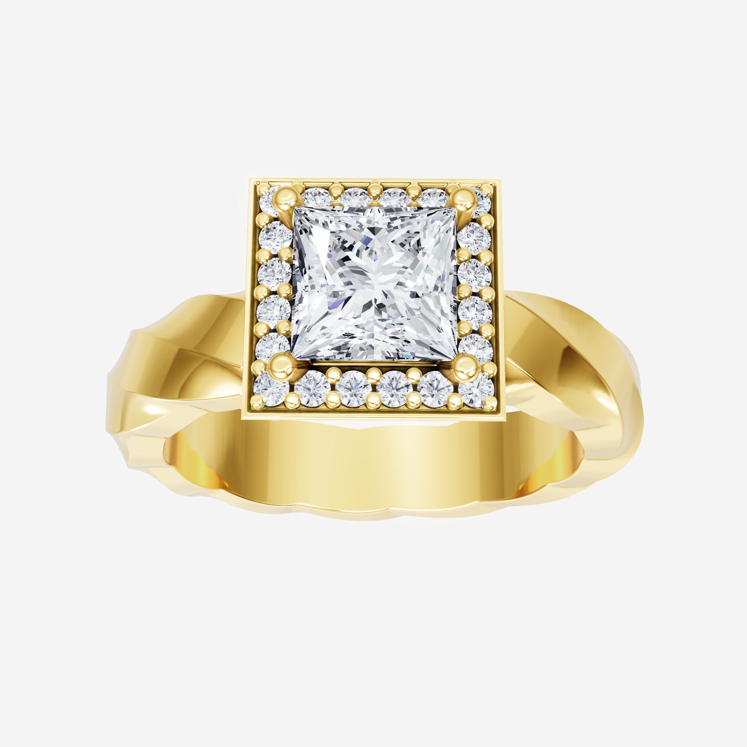 You’ve designed a ring that reflects lasting elegance and grace! Crafted from 18k Yellow Gold, this exquisite Princess lab-grown diamond is the centerpiece of this unique design. This Twisted Shank with a Pave Halo head showcases the brilliance of the Princess diamond, creating a timeless look. Ideal for those who seek both beauty and meaning, this ring will stand as a testament to cherished memories.