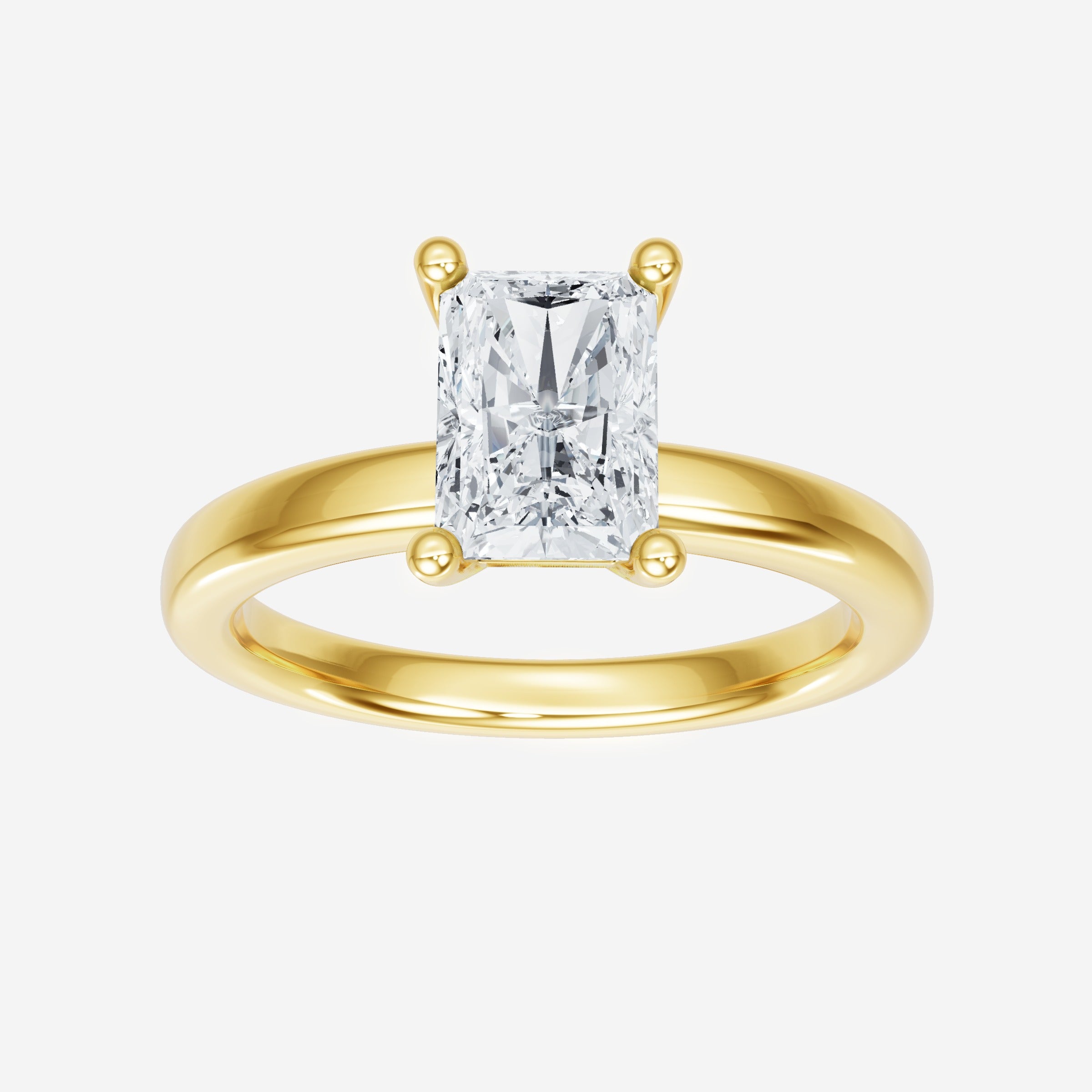 You’ve designed a ring that reflects lasting elegance and grace! Crafted from 18k Yellow Gold, this exquisite Radiant lab-grown diamond is the centerpiece of this unique design. This Basic Plain Shank with a 4 Prong Head head showcases the brilliance of the Radiant diamond, creating a timeless look. Ideal for those who seek both beauty and meaning, this ring will stand as a testament to cherished memories.