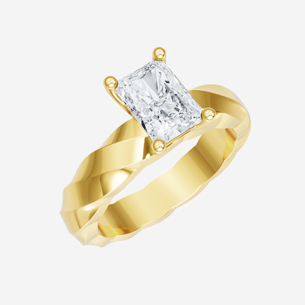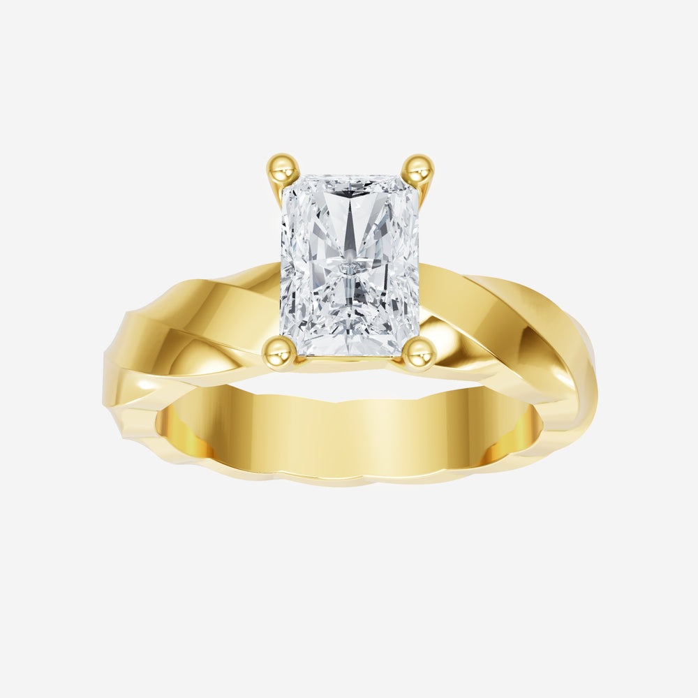 You’ve designed a ring that reflects lasting elegance and grace! Crafted from 18k Yellow Gold, this exquisite Radiant lab-grown diamond is the centerpiece of this unique design. This Twisted Shank with a 4 Prong Head head showcases the brilliance of the Radiant diamond, creating a timeless look. With this ring, celebrate every moment of joy, success, and love.