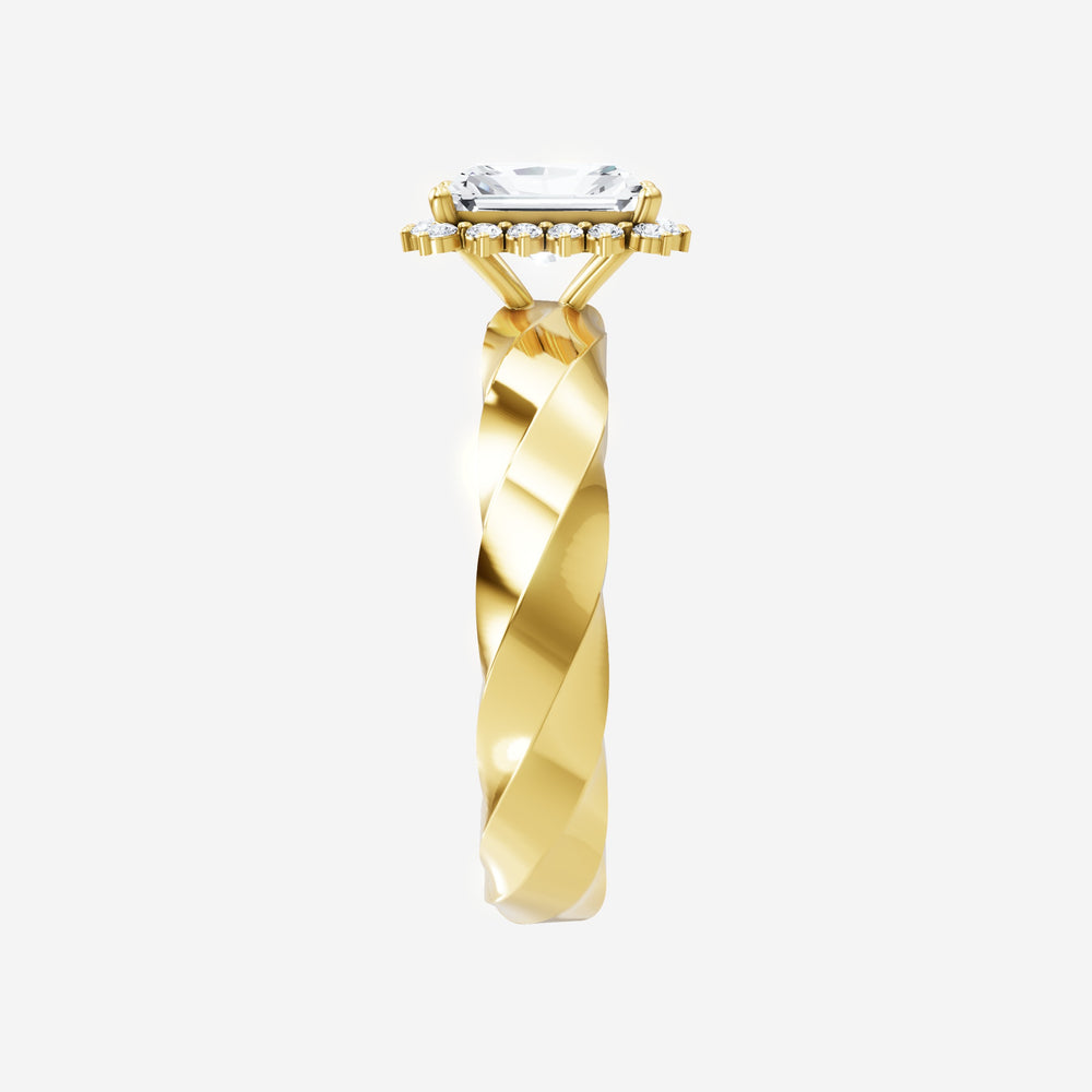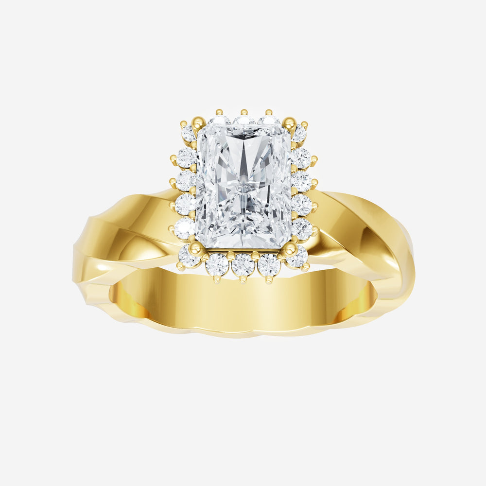 You’ve designed a ring that reflects lasting elegance and grace! Crafted from 18k Yellow Gold, this exquisite Radiant lab-grown diamond is the centerpiece of this unique design. This Twisted Shank with a Diana Halo head showcases the brilliance of the Radiant diamond, creating a timeless look. This stunning ring makes the perfect symbol of everlasting love and devotion.