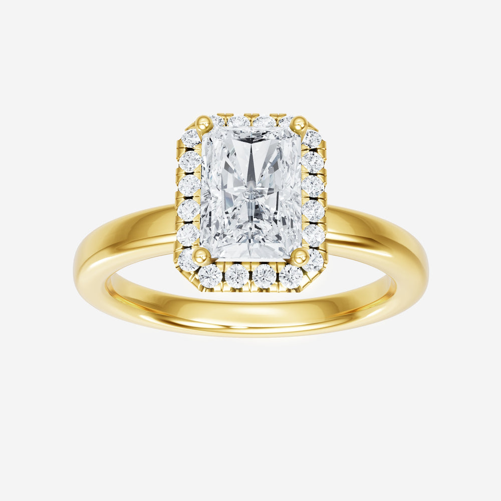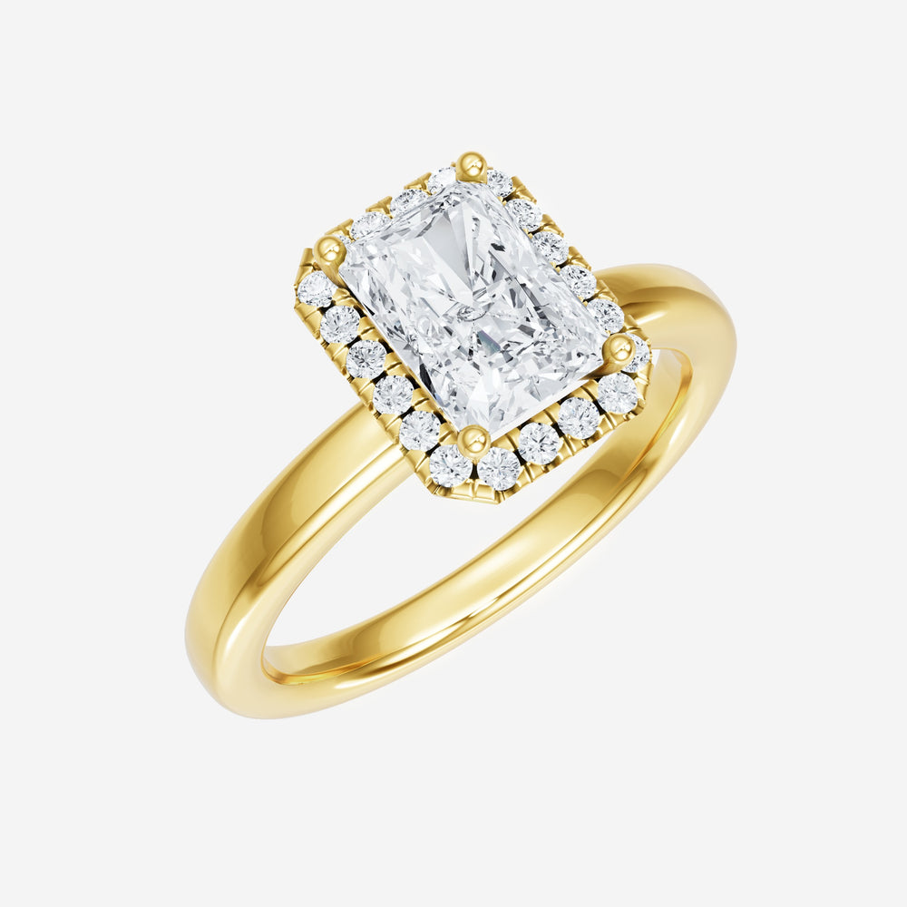 You’ve designed a ring that reflects lasting elegance and grace! Crafted from 18k Yellow Gold, this exquisite Radiant lab-grown diamond is the centerpiece of this unique design. This Basic Plain Shank with a Micro Halo head showcases the brilliance of the Radiant diamond, creating a timeless look. It's a piece of elegance and beauty, perfect for marking life's most beautiful occasions.