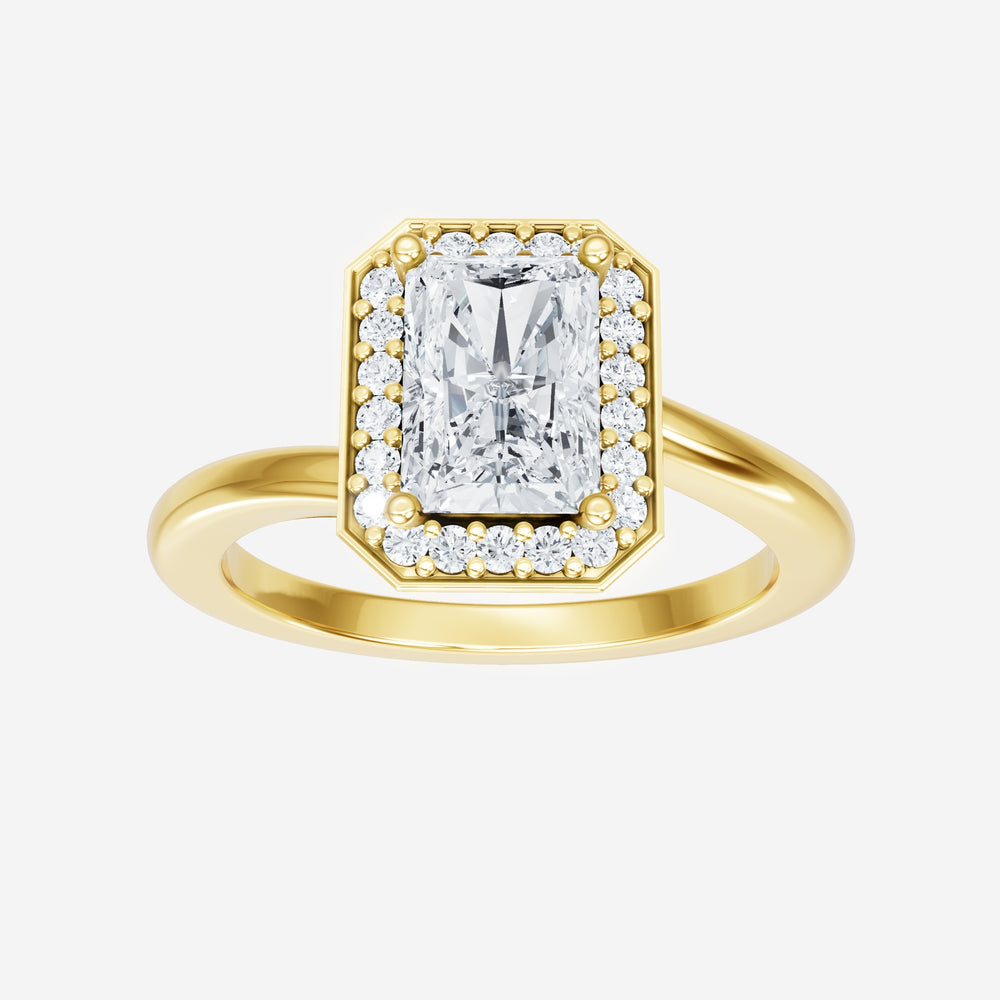 You’ve designed a ring that reflects lasting elegance and grace! Crafted from 18k Yellow Gold, this exquisite Radiant lab-grown diamond is the centerpiece of this unique design. This Bypass Shank with a Pave Halo head showcases the brilliance of the Radiant diamond, creating a timeless look. This ring will become a cherished reminder of life's most treasured moments.