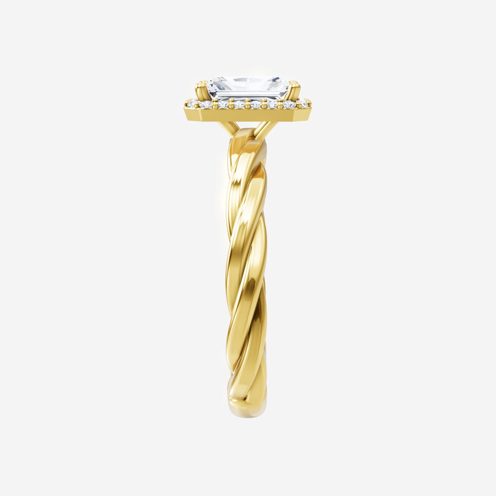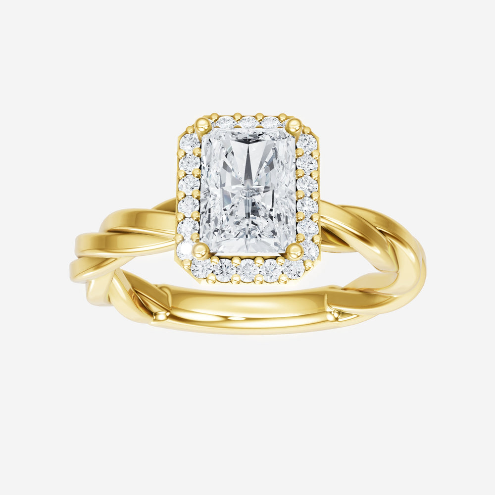 You’ve designed a ring that reflects lasting elegance and grace! Crafted from 18k Yellow Gold, this exquisite Radiant lab-grown diamond is the centerpiece of this unique design. This Rope Plain Shank with a Single Halo head showcases the brilliance of the Radiant diamond, creating a timeless look. This stunning ring makes the perfect symbol of everlasting love and devotion.