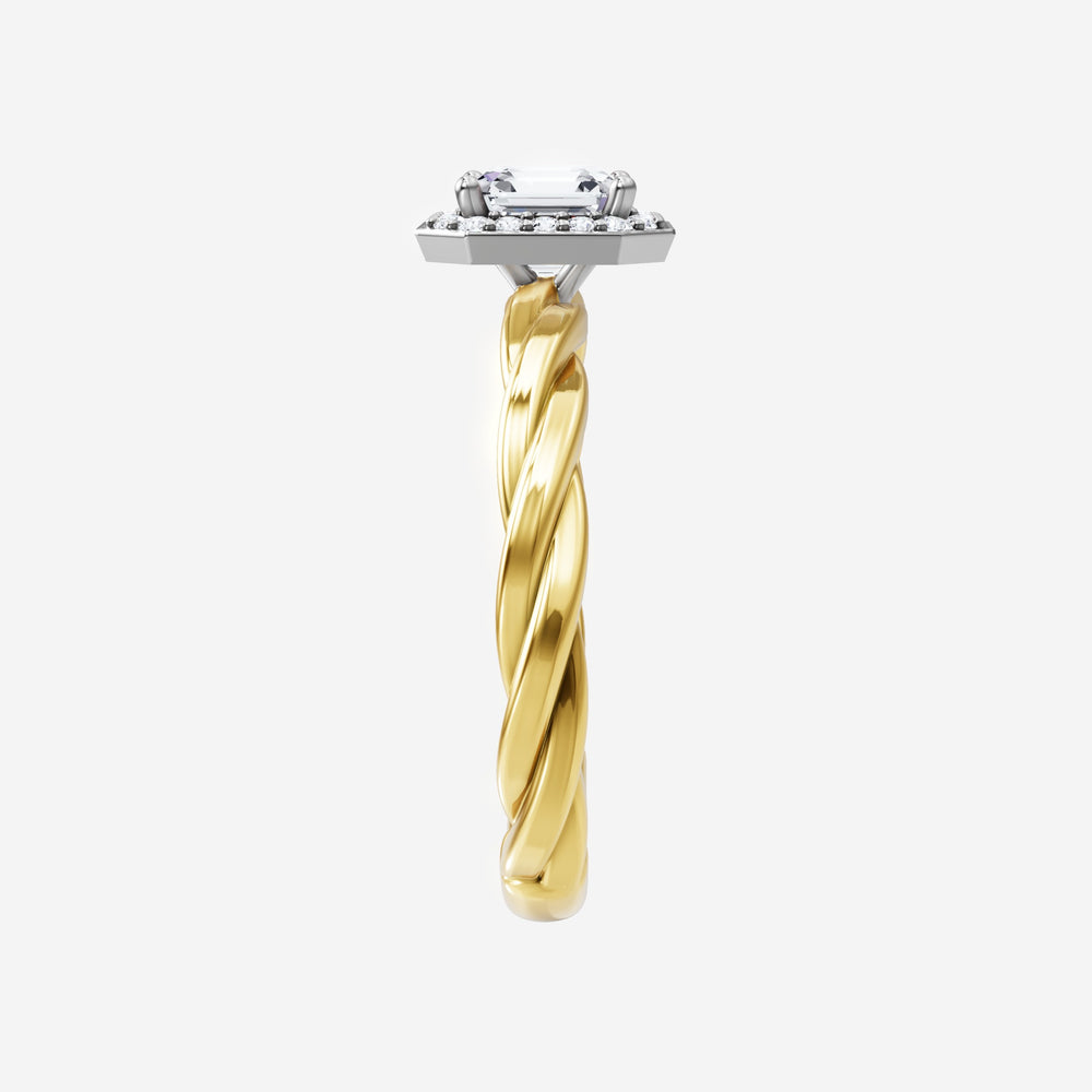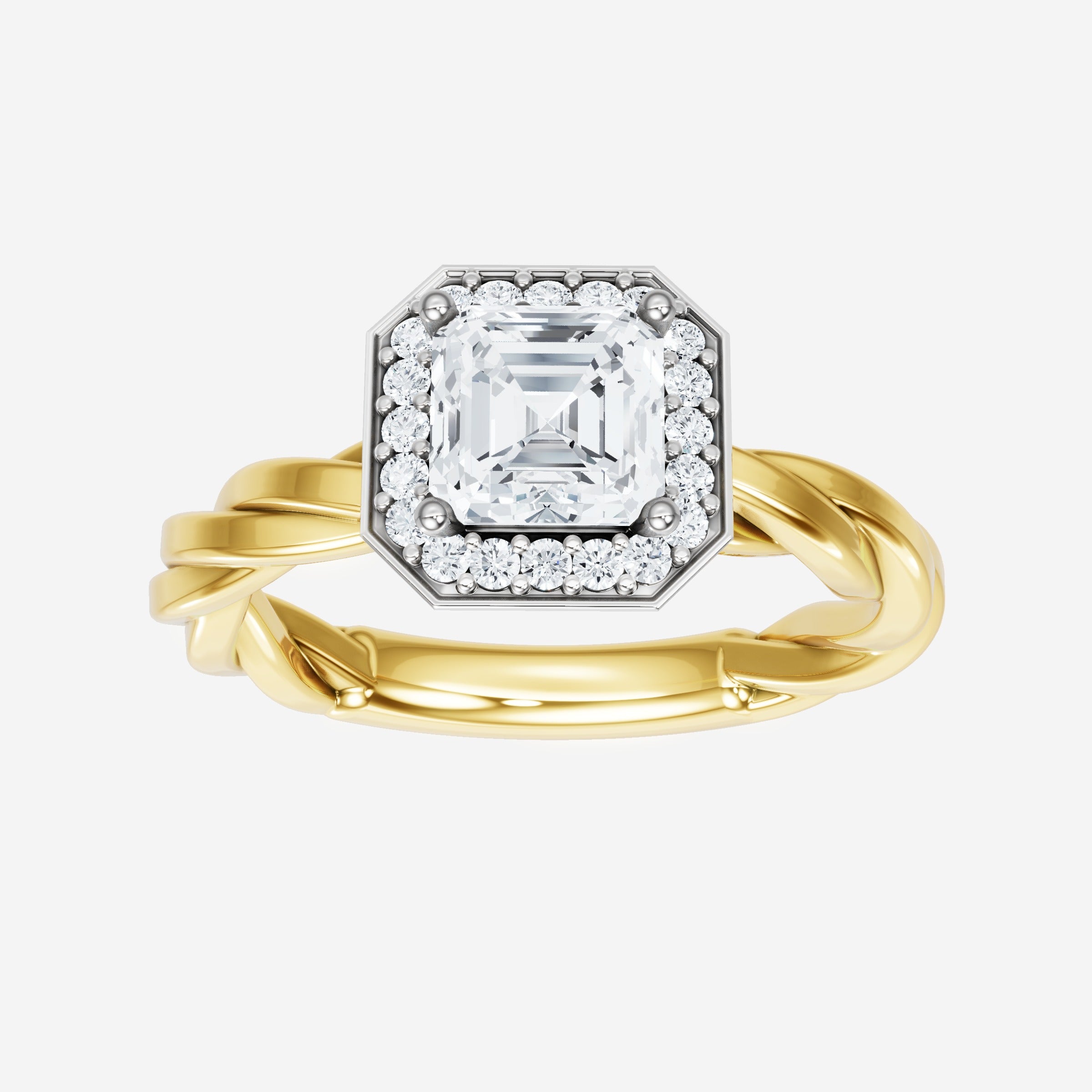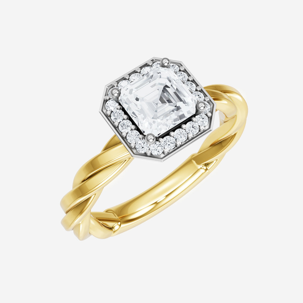 You’ve designed a ring that reflects lasting elegance and grace! Crafted from 18k Yellow White Dual Tone, this exquisite Asscher lab-grown diamond is the centerpiece of this unique design. This Rope Plain Shank with a Pave Halo head showcases the brilliance of the Asscher diamond, creating a timeless look. A perfect choice to celebrate love, commitment, and everything in between.