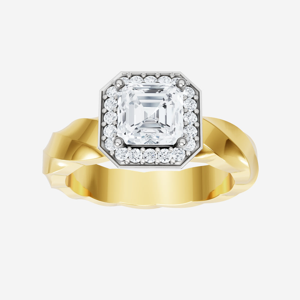 You’ve designed a ring that reflects lasting elegance and grace! Crafted from 18k Yellow White Dual Tone, this exquisite Asscher lab-grown diamond is the centerpiece of this unique design. This Twisted Shank with a Pave Halo head showcases the brilliance of the Asscher diamond, creating a timeless look. A perfect choice to celebrate love, commitment, and everything in between.