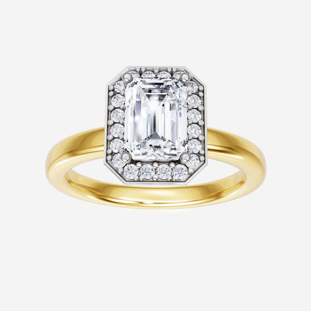 You’ve designed a ring that reflects lasting elegance and grace! Crafted from 18k Yellow White Dual Tone, this exquisite Emerald lab-grown diamond is the centerpiece of this unique design. This Basic Plain Shank with a Pave Halo head showcases the brilliance of the Emerald diamond, creating a timeless look. With this ring, celebrate every moment of joy, success, and love.
