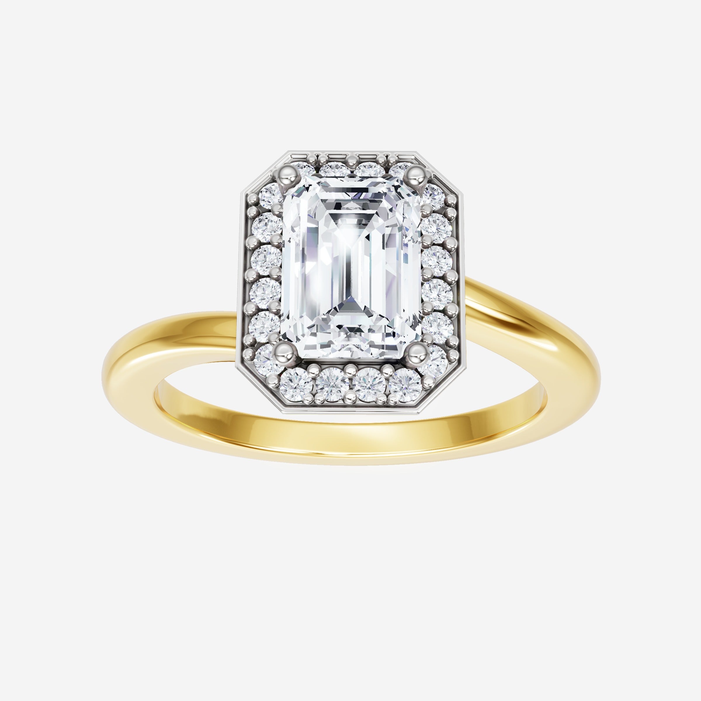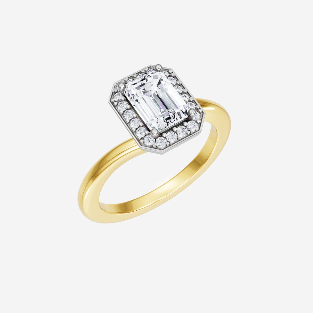 You’ve designed a ring that reflects lasting elegance and grace! Crafted from 18k Yellow White Dual Tone, this exquisite Emerald lab-grown diamond is the centerpiece of this unique design. This Bypass Shank with a Pave Halo head showcases the brilliance of the Emerald diamond, creating a timeless look. Whether as a gift or a personal treasure, this ring will forever symbolize the most meaningful moments in life.