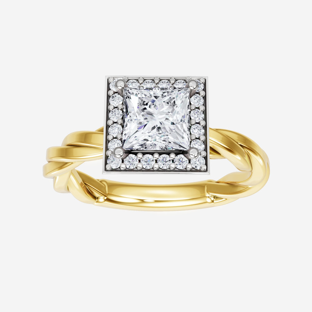 You’ve designed a ring that reflects lasting elegance and grace! Crafted from 18k Yellow White Dual Tone, this exquisite Princess lab-grown diamond is the centerpiece of this unique design. This Rope Plain Shank with a Pave Halo head showcases the brilliance of the Princess diamond, creating a timeless look. Ideal for those who seek both beauty and meaning, this ring will stand as a testament to cherished memories.