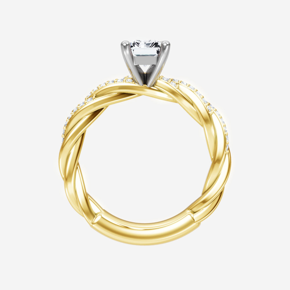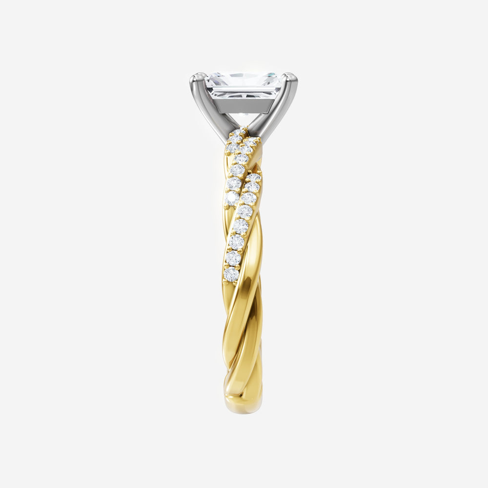 You’ve designed a ring that reflects lasting elegance and grace! Crafted from 18k Yellow White Dual Tone, this exquisite Radiant lab-grown diamond is the centerpiece of this unique design. This Rope Diamond Shank with a 4 Prong Head head showcases the brilliance of the Radiant diamond, creating a timeless look. This stunning ring makes the perfect symbol of everlasting love and devotion.