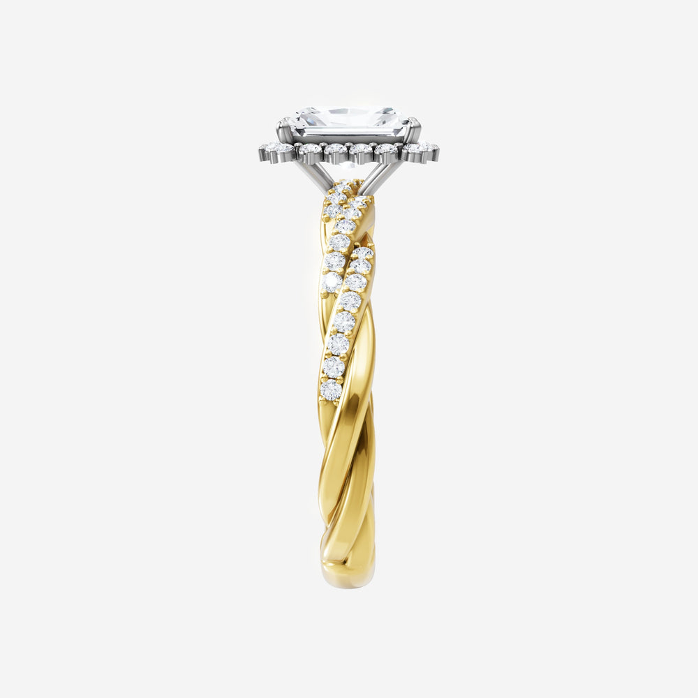 You’ve designed a ring that reflects lasting elegance and grace! Crafted from 18k Yellow White Dual Tone, this exquisite Radiant lab-grown diamond is the centerpiece of this unique design. This Rope Diamond Shank with a Diana Halo head showcases the brilliance of the Radiant diamond, creating a timeless look. It's a piece of elegance and beauty, perfect for marking life's most beautiful occasions.