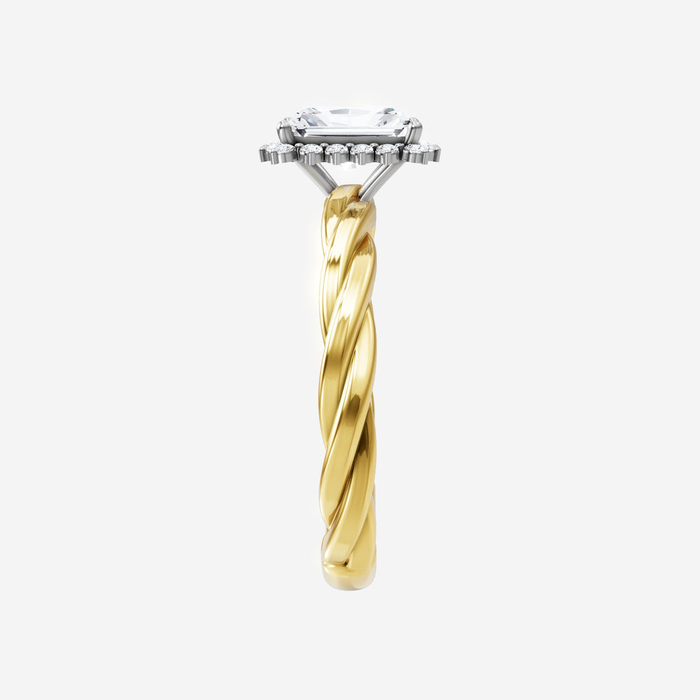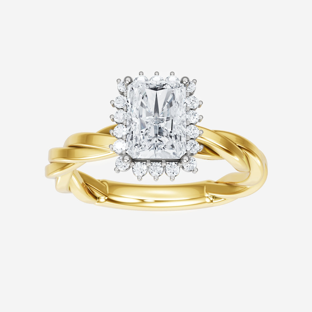 You’ve designed a ring that reflects lasting elegance and grace! Crafted from 18k Yellow White Dual Tone, this exquisite Radiant lab-grown diamond is the centerpiece of this unique design. This Rope Plain Shank with a Diana Halo head showcases the brilliance of the Radiant diamond, creating a timeless look. It's a piece of elegance and beauty, perfect for marking life's most beautiful occasions.