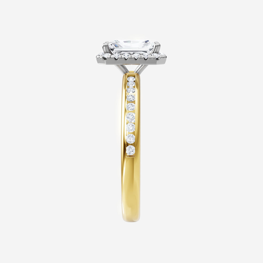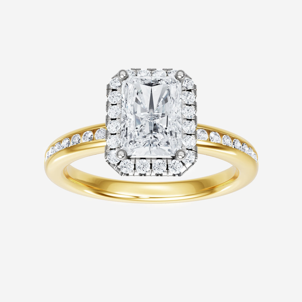 You’ve designed a ring that reflects lasting elegance and grace! Crafted from 18k Yellow White Dual Tone, this exquisite Radiant lab-grown diamond is the centerpiece of this unique design. This Channel Set Shank with a Micro Halo head showcases the brilliance of the Radiant diamond, creating a timeless look. This ring will become a cherished reminder of life's most treasured moments.