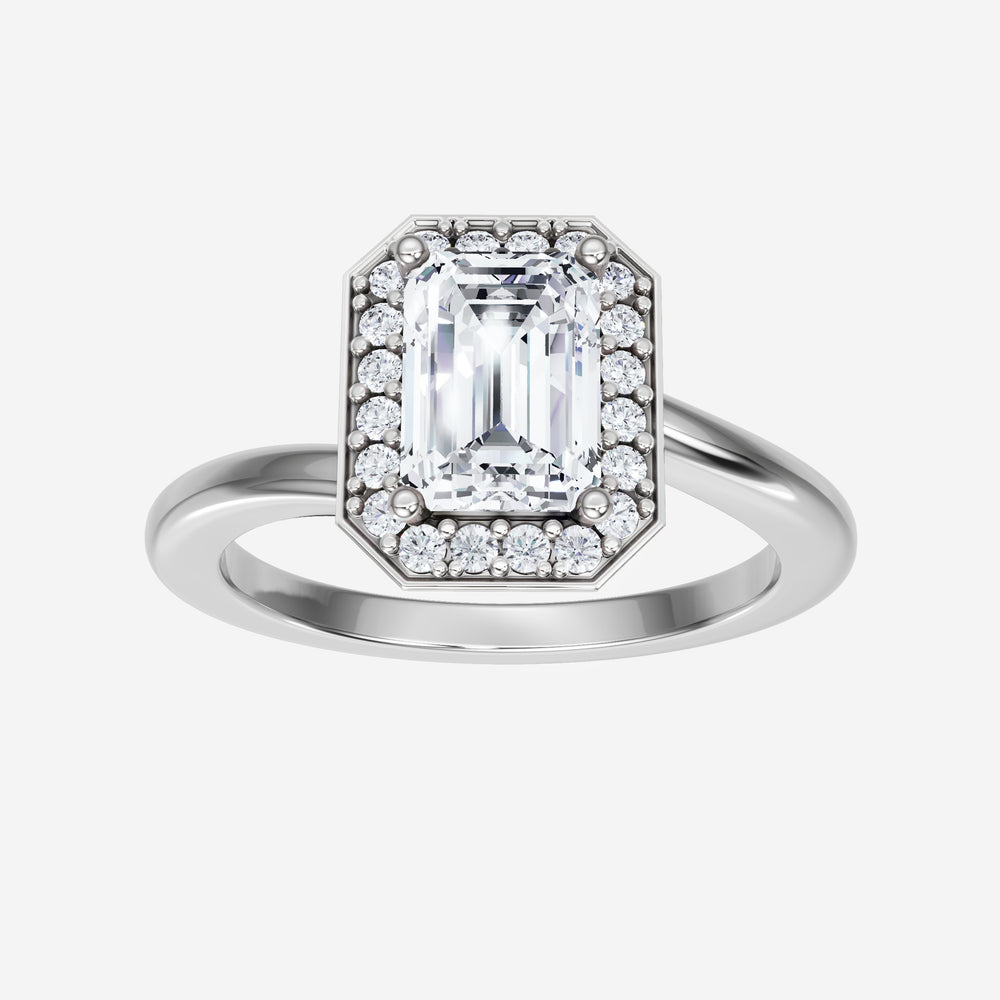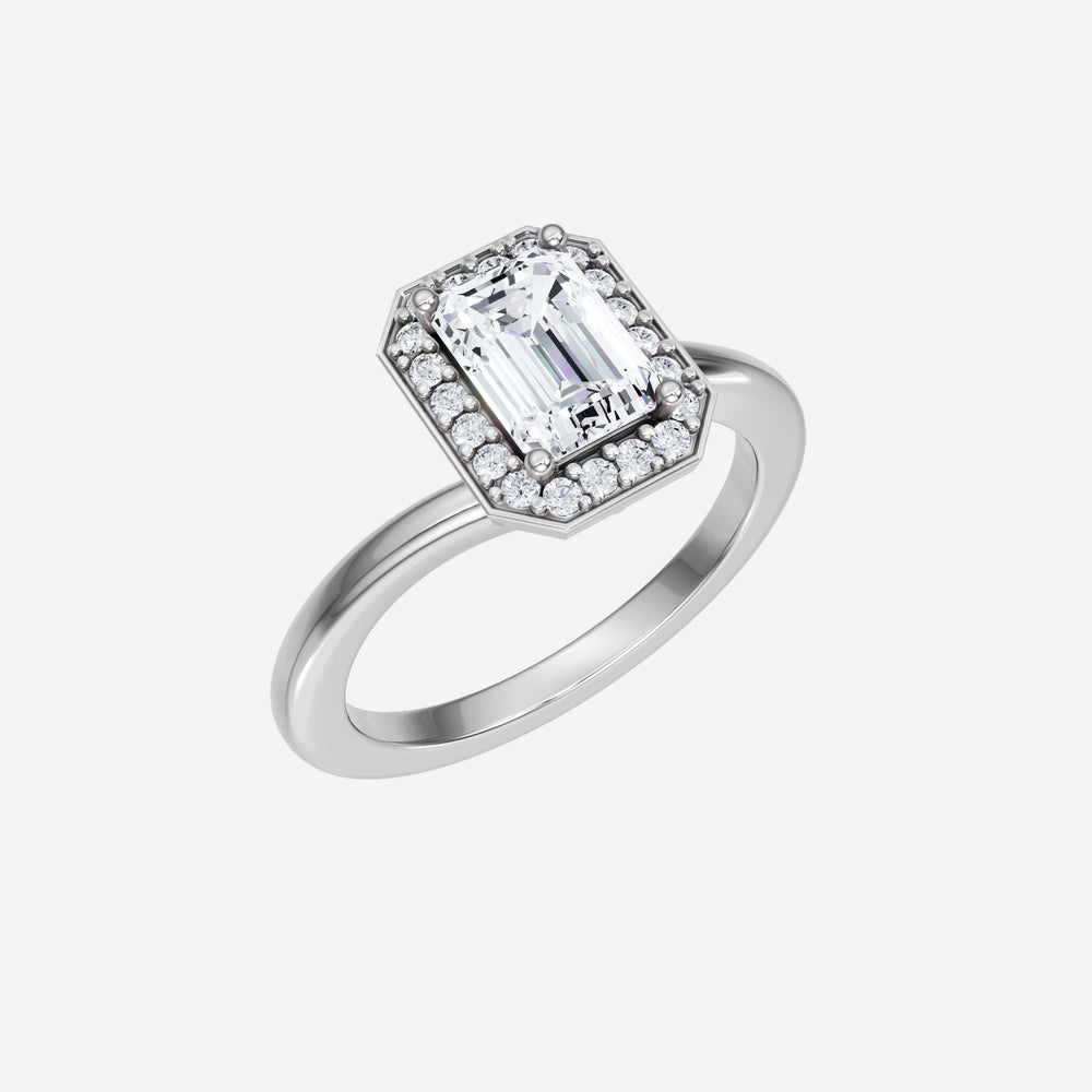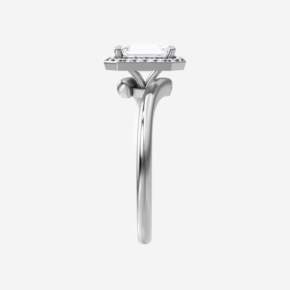 You’ve designed a ring that reflects lasting elegance and grace! Crafted from 950 Platinum, this exquisite Emerald lab-grown diamond is the centerpiece of this unique design. This Bypass Shank with a Pave Halo head showcases the brilliance of the Emerald diamond, creating a timeless look. This stunning ring makes the perfect symbol of everlasting love and devotion.