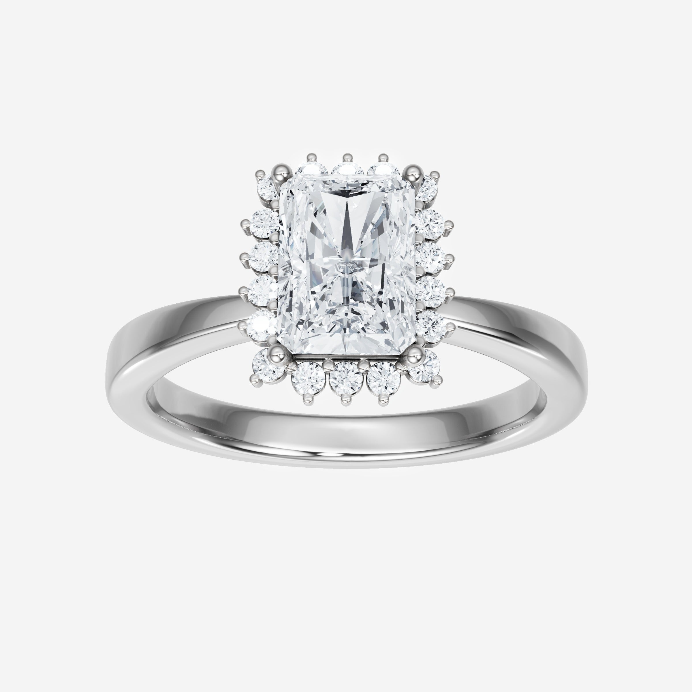 You’ve designed a ring that reflects lasting elegance and grace! Crafted from 950 Platinum, this exquisite Radiant lab-grown diamond is the centerpiece of this unique design. This Bow Shank (Reverse Tapered) with a Diana Halo head showcases the brilliance of the Radiant diamond, creating a timeless look. With this ring, celebrate every moment of joy, success, and love.