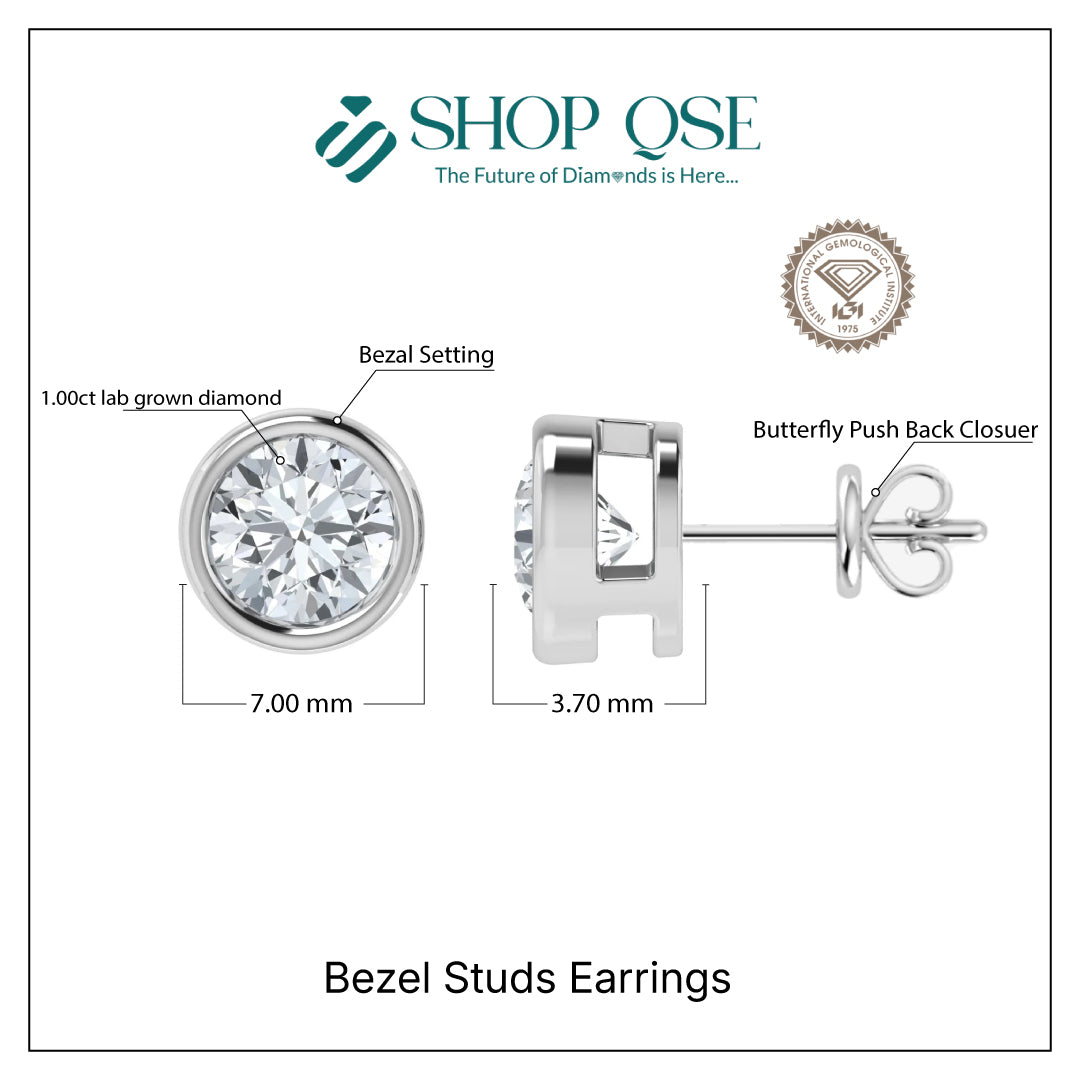 Lab Grown Diamond Bezel Studs Earrings 1.00 ct