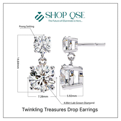 IGI 4ct Lab Grown Diamond Twinkling Treasures Drop Earrings