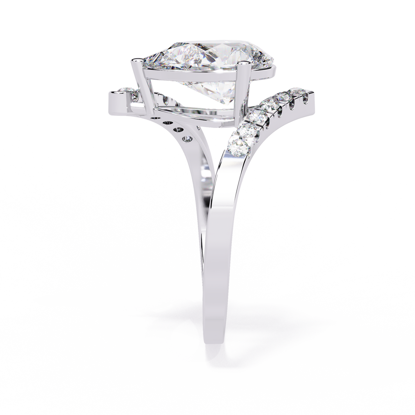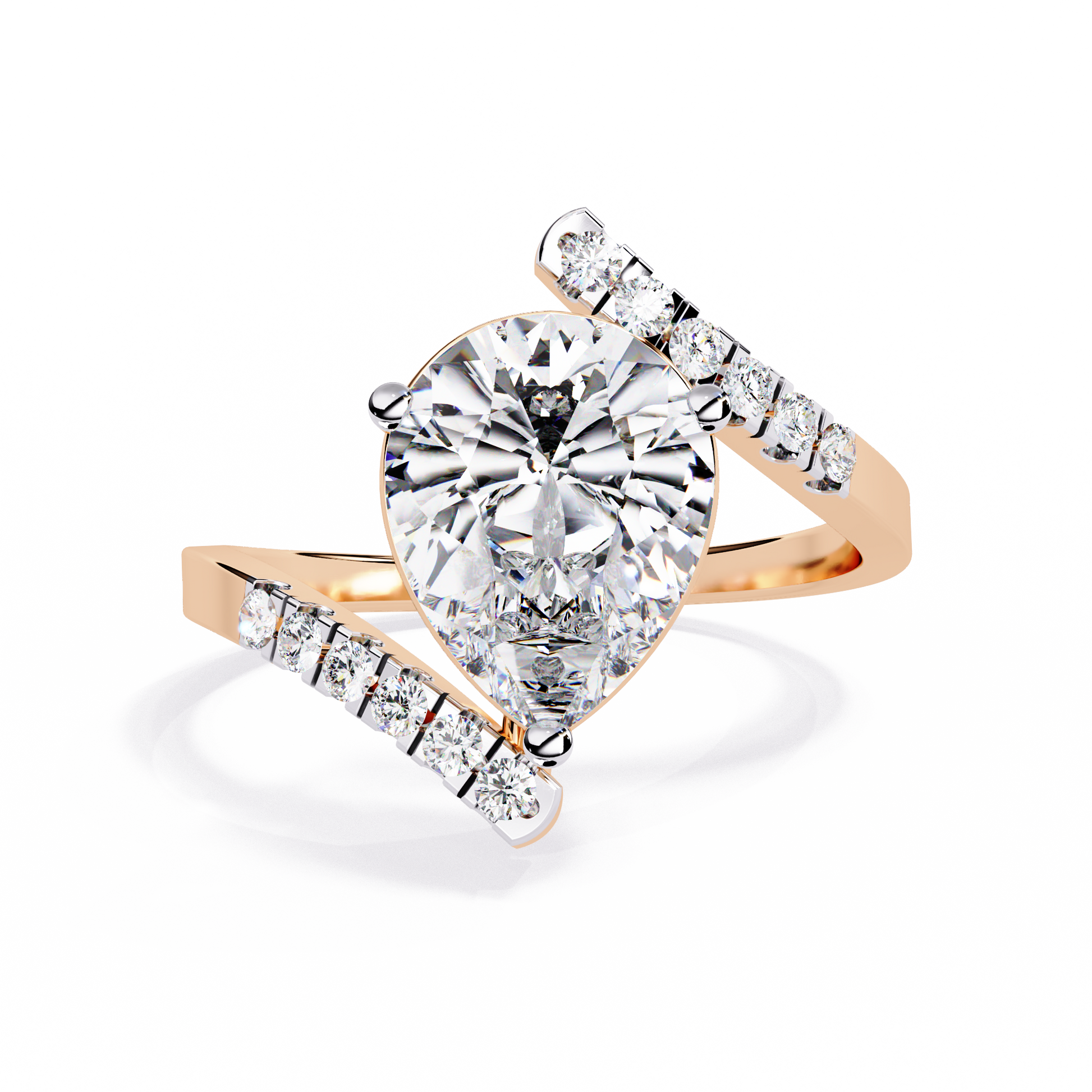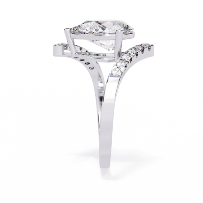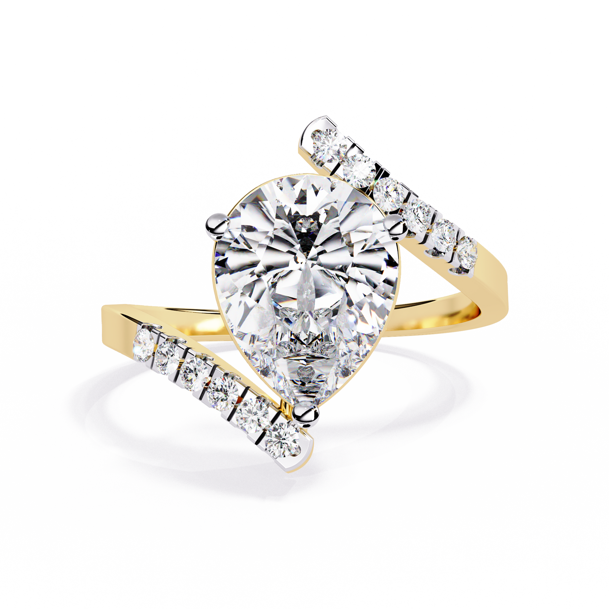 Make a bold statement with this contemporary open band ring, showcasing a captivating 2.50 carat lab-grown pear-shaped diamond as its centerpiece. The unique diagonal placement of the pear-cut gem is framed by a sleek 14K gold band, encrusted with sparkling round lab-grown diamonds that add a stylish twist. This modern, eye-catching design blends elegance with individuality, perfect for those who appreciate standout jewelry with timeless sparkle.