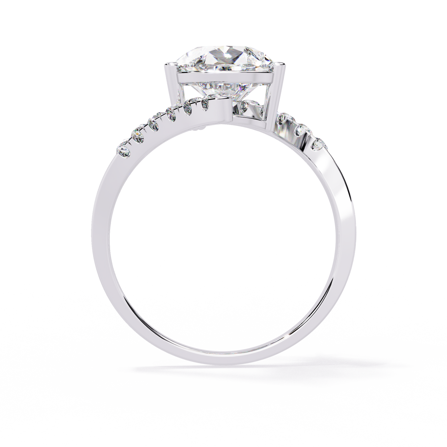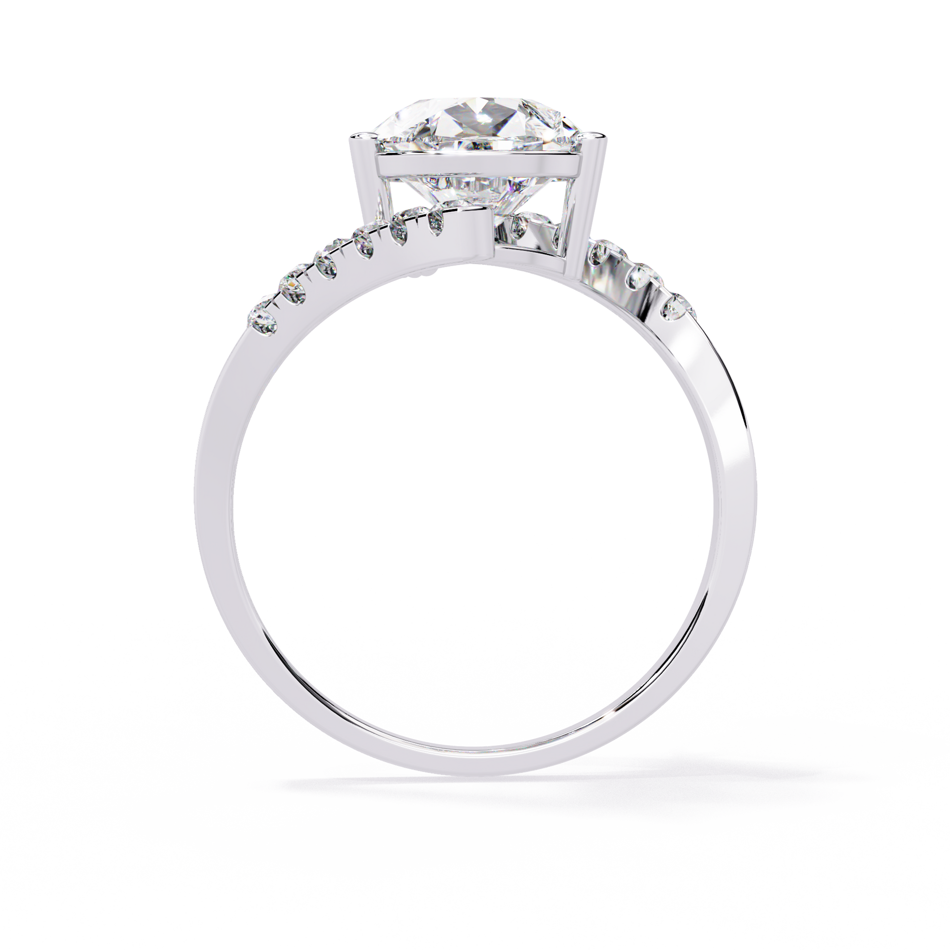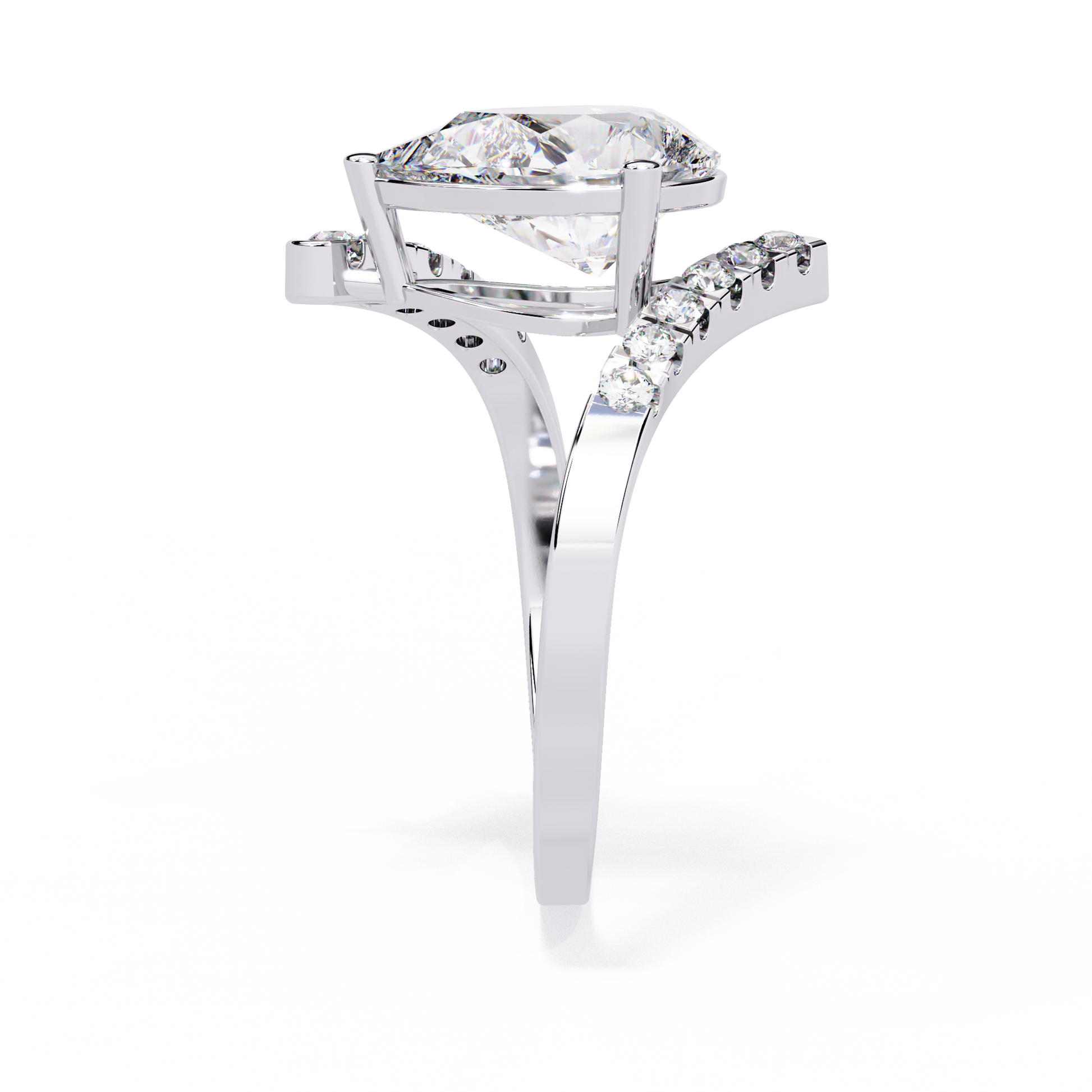 Make a bold statement with this contemporary open band ring, showcasing a captivating 2.50 carat lab-grown pear-shaped diamond as its centerpiece. The unique diagonal placement of the pear-cut gem is framed by a sleek 14K gold band, encrusted with sparkling round lab-grown diamonds that add a stylish twist. This modern, eye-catching design blends elegance with individuality, perfect for those who appreciate standout jewelry with timeless sparkle.