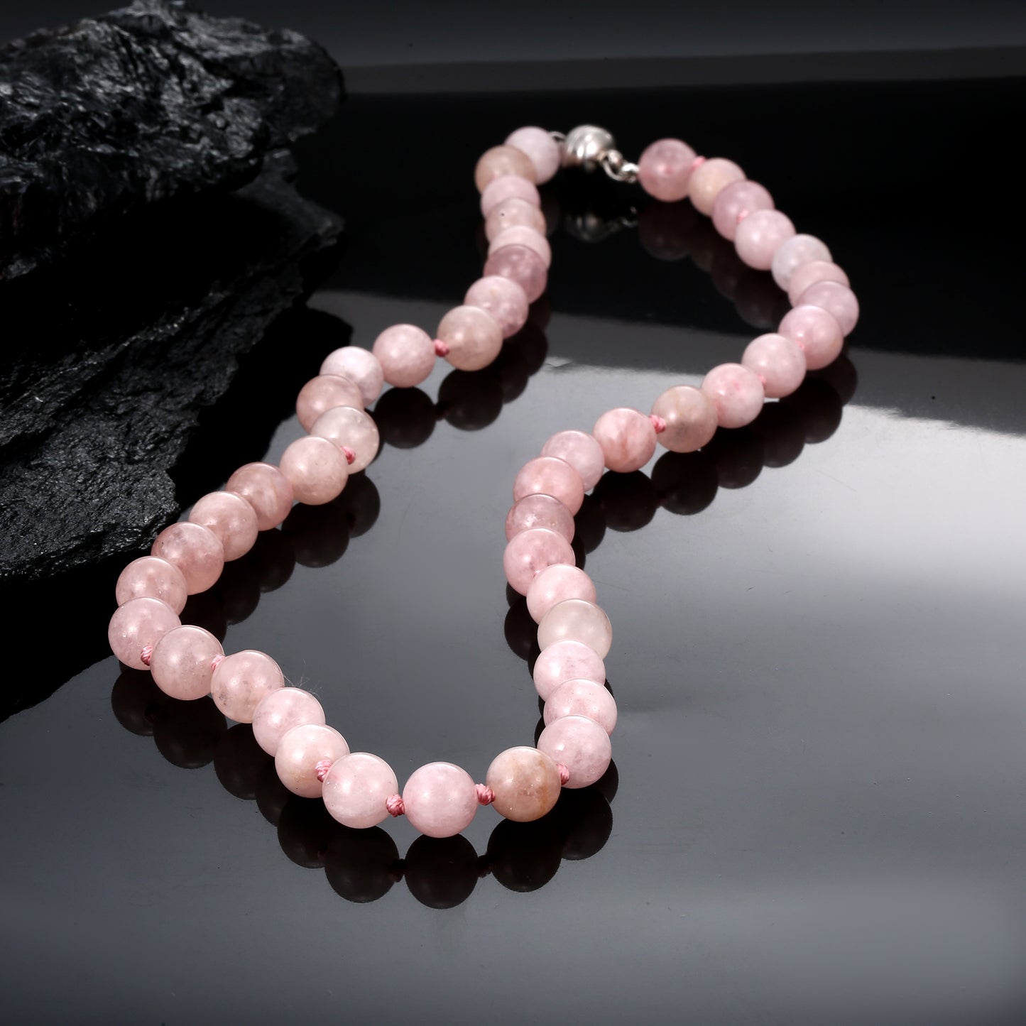 This Morganite necklace, adorned with 10mm round beads and a striking 925 silver magnetic lock, is a testament to your refined taste and appreciation for the beauty of Morganite gemstones. With an impressive 300 carats of gemstone brilliance, it effortlessly adds a touch of elegance to any outfit, making it an essential accessory for those.