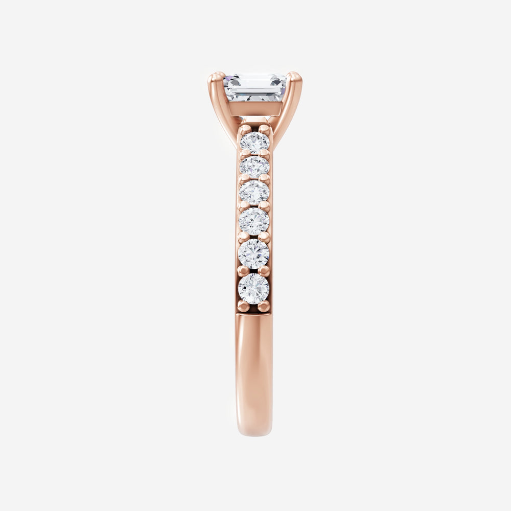 You’ve designed a ring that reflects lasting elegance and grace! Crafted from 14k Rose Gold, this exquisite Asscher lab-grown diamond is the centerpiece of this unique design. This Cathedral Diamond Shank with a 4 Prong Head head showcases the brilliance of the Asscher diamond, creating a timeless look. This elegant piece is the perfect symbol of love, strength, and timeless beauty.